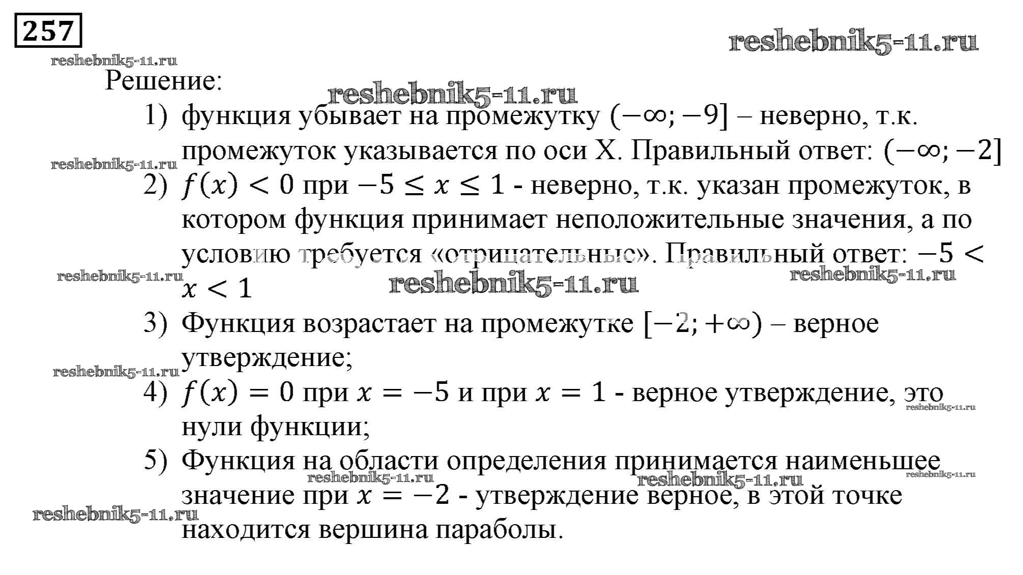 Готовая домашняя работа с ответами по Алгебре за 9 класс Мерзляк, Полонский, Якир Учебник Алгоритм успеха Вентана-граф 2016 ФГОС - Упражнения 257