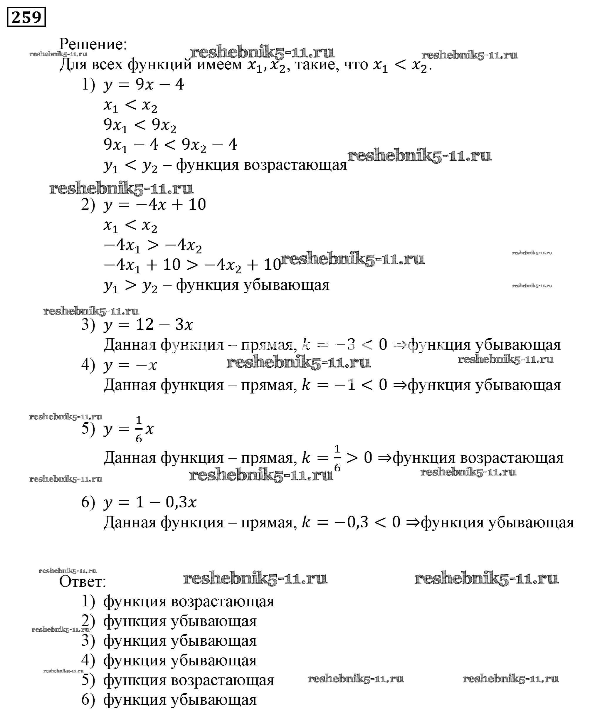Готовая домашняя работа с ответами по Алгебре за 9 класс Мерзляк, Полонский, Якир Учебник Алгоритм успеха Вентана-граф 2016 ФГОС - Упражнения 259