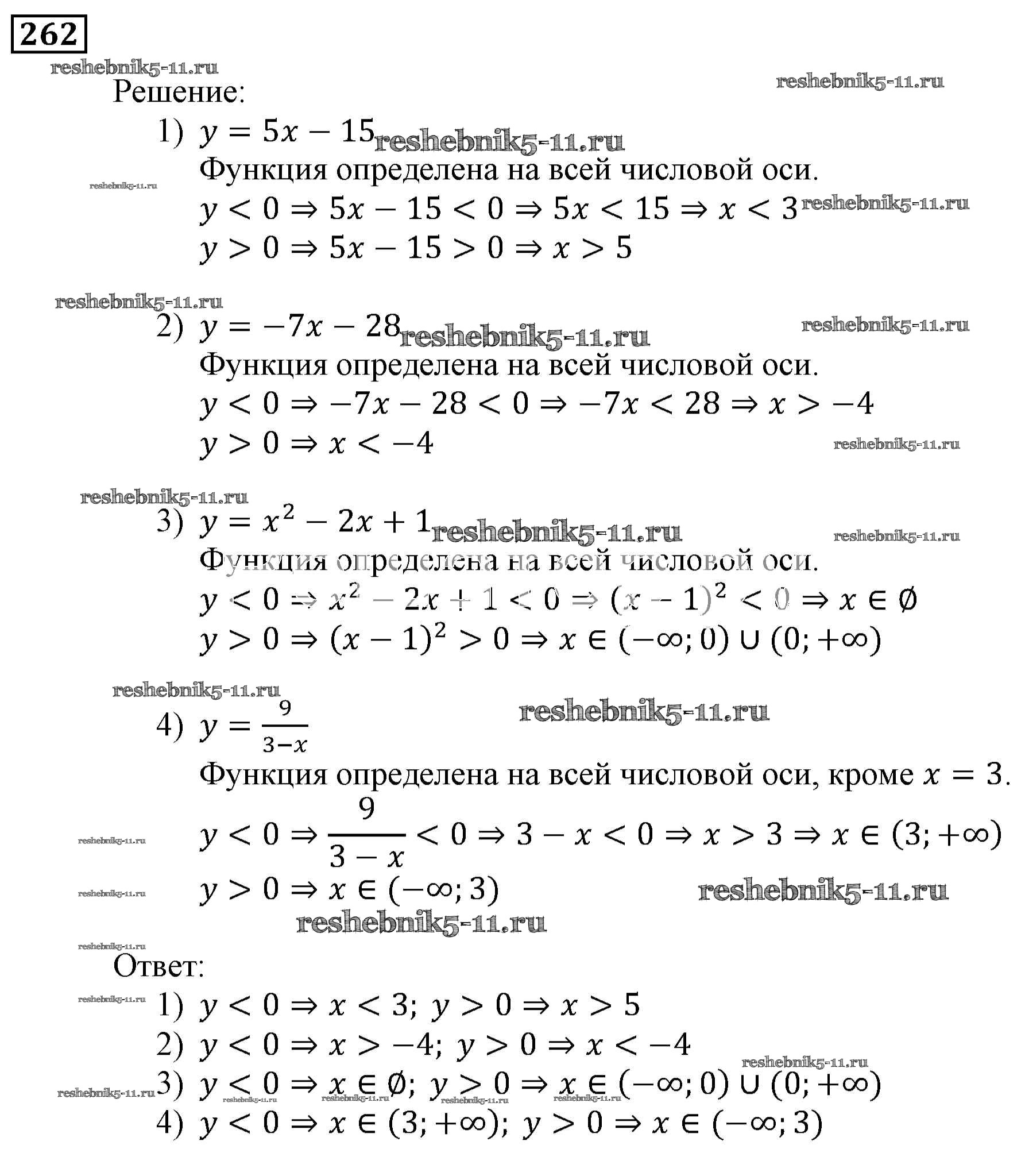Готовая домашняя работа с ответами по Алгебре за 9 класс Мерзляк, Полонский, Якир Учебник Алгоритм успеха Вентана-граф 2016 ФГОС - Упражнения 262