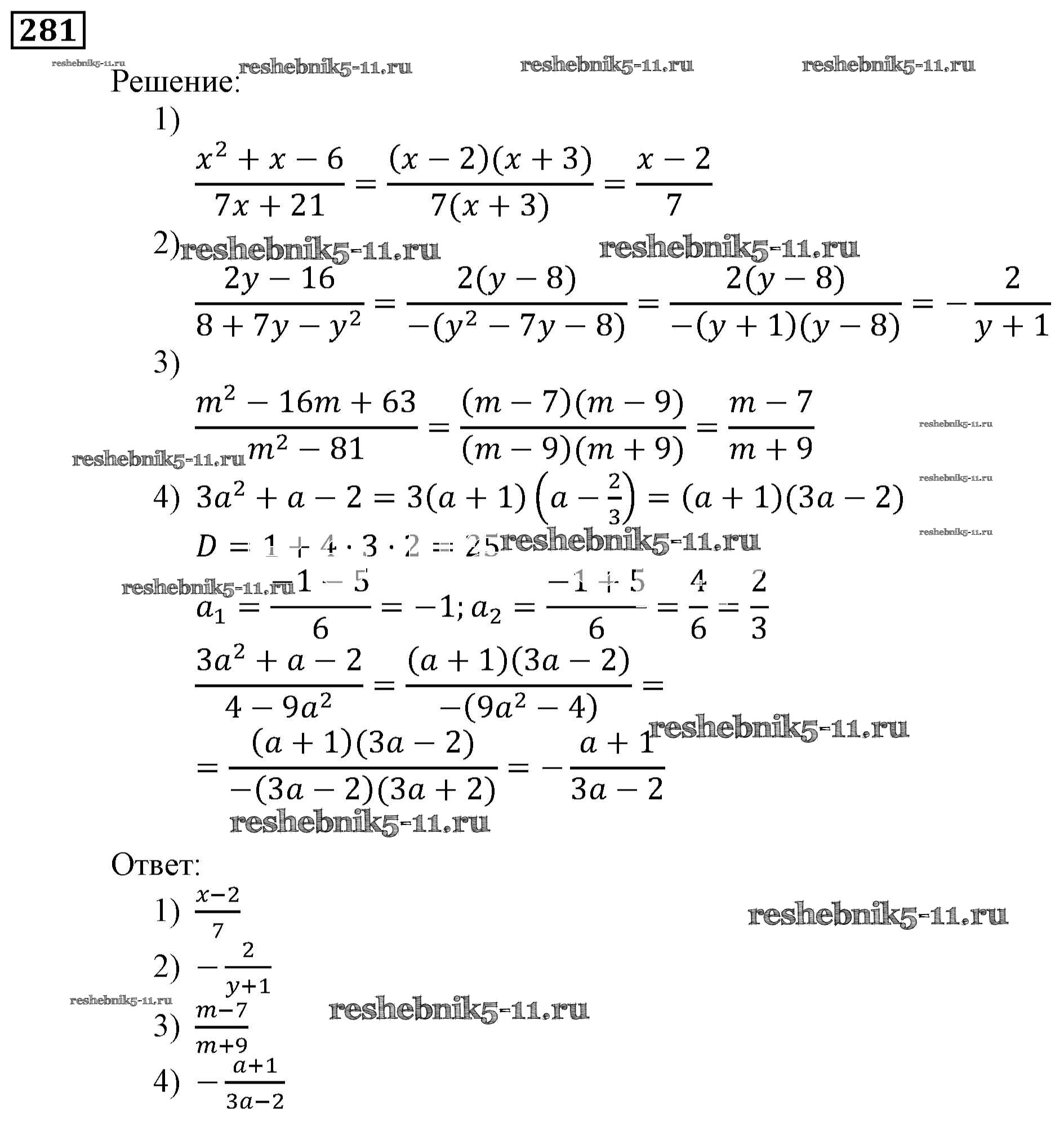 Готовая домашняя работа с ответами по Алгебре за 9 класс Мерзляк, Полонский, Якир Учебник Алгоритм успеха Вентана-граф 2016 ФГОС - Упражнения 281