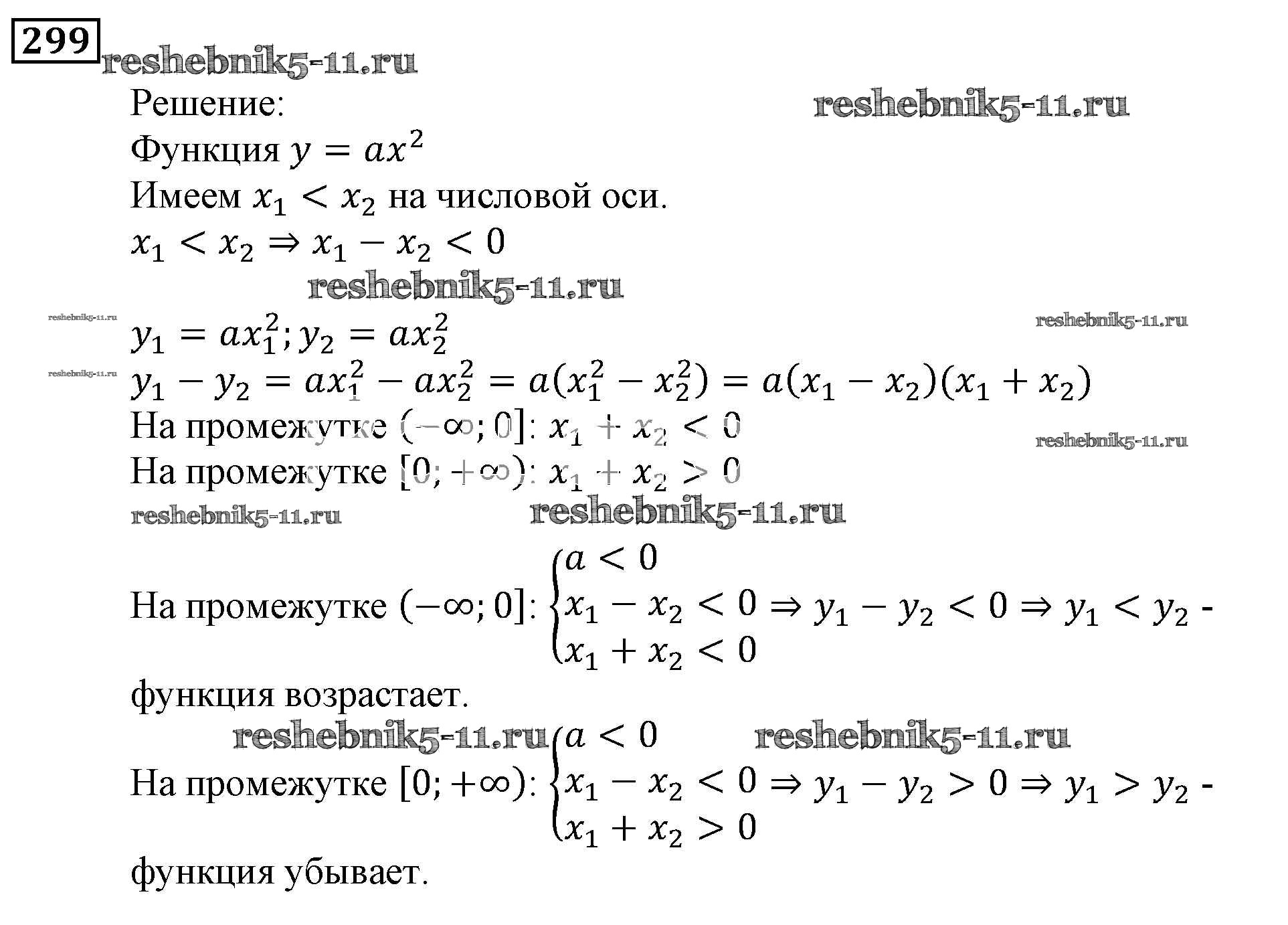 Готовая домашняя работа с ответами по Алгебре за 9 класс Мерзляк, Полонский, Якир Учебник Алгоритм успеха Вентана-граф 2016 ФГОС - Упражнения 299