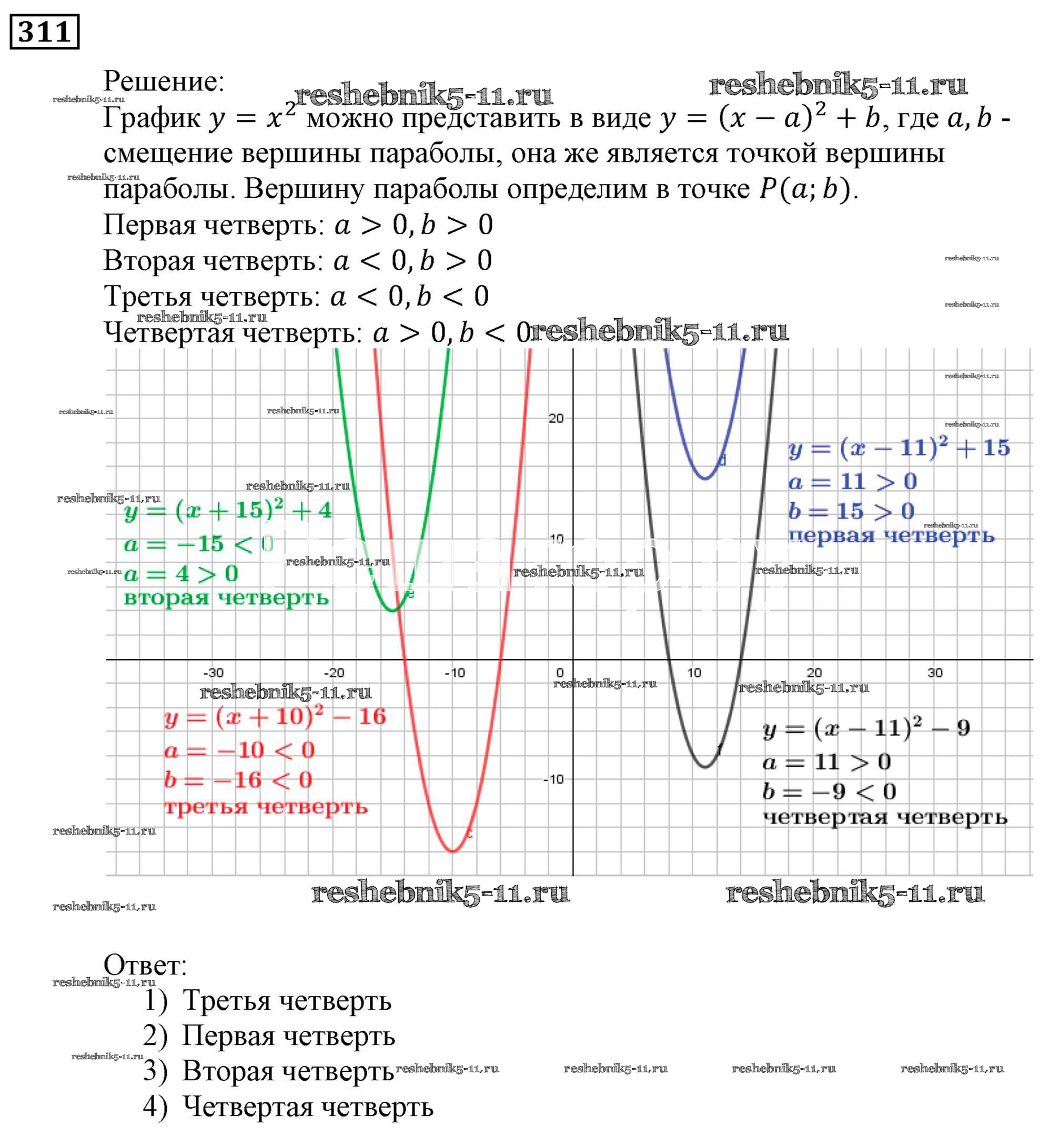 Готовая домашняя работа с ответами по Алгебре за 9 класс Мерзляк, Полонский, Якир Учебник Алгоритм успеха Вентана-граф 2016 ФГОС - Упражнения 311