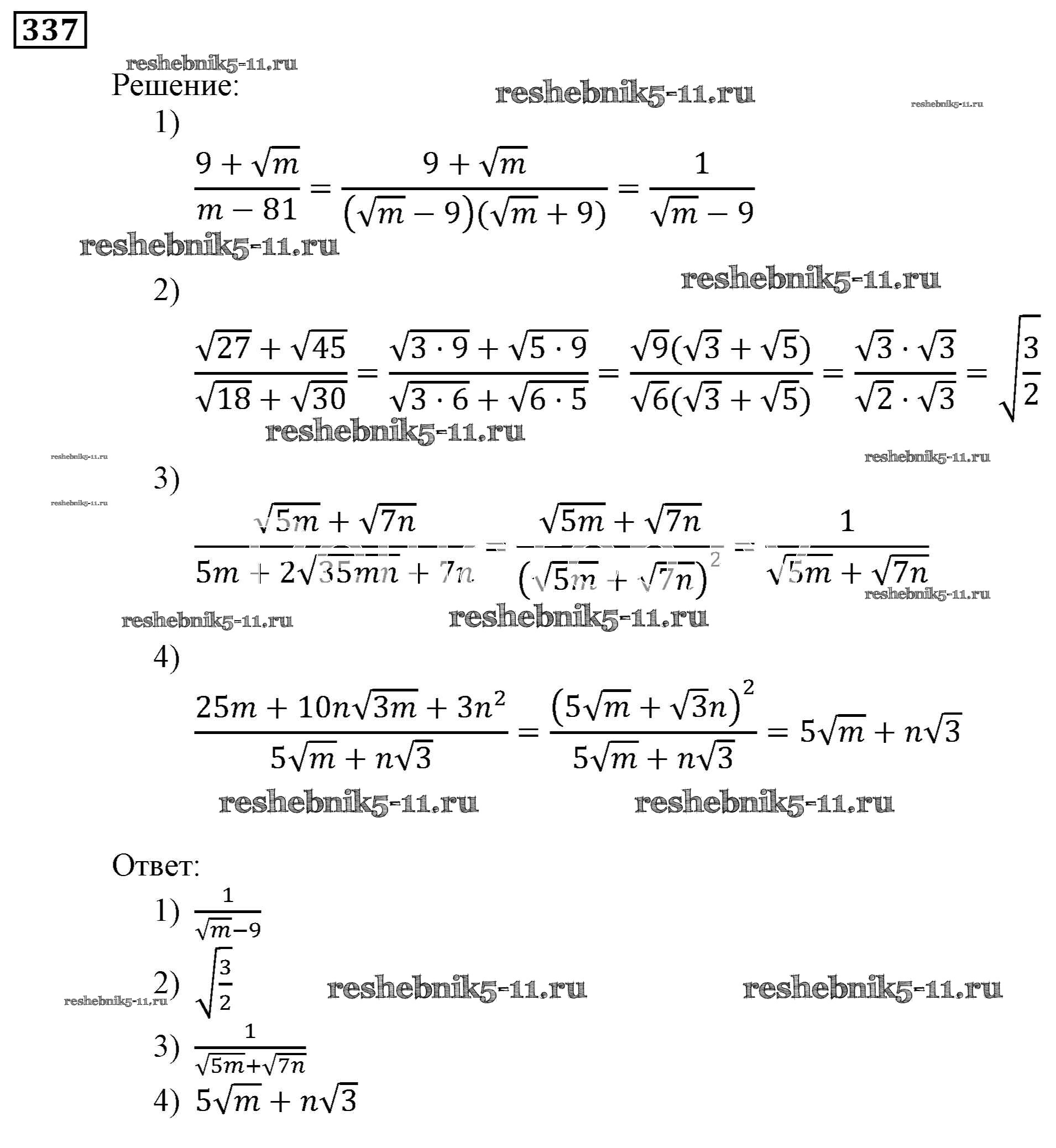 Готовая домашняя работа с ответами по Алгебре за 9 класс Мерзляк, Полонский, Якир Учебник Алгоритм успеха Вентана-граф 2016 ФГОС - Упражнения 337