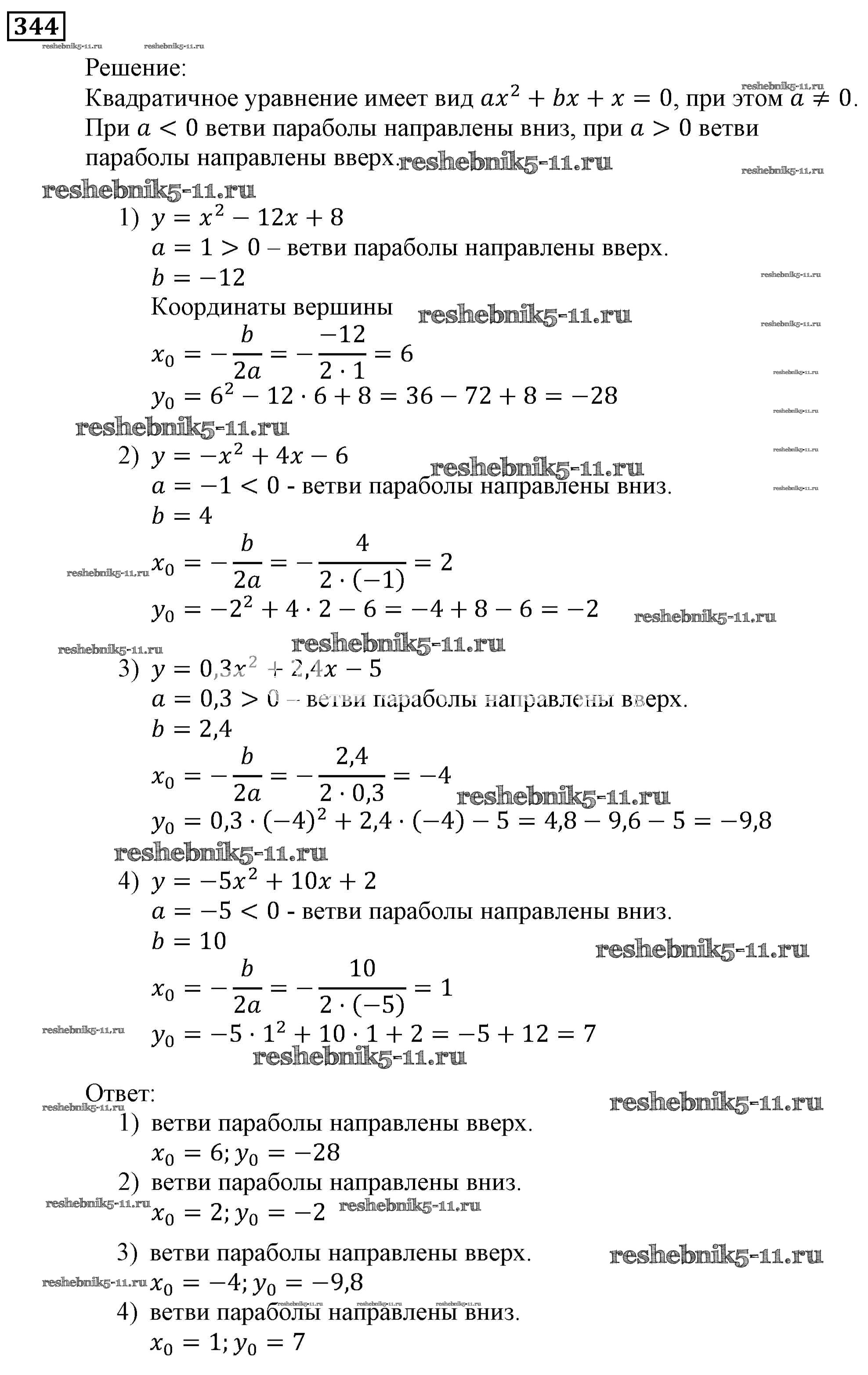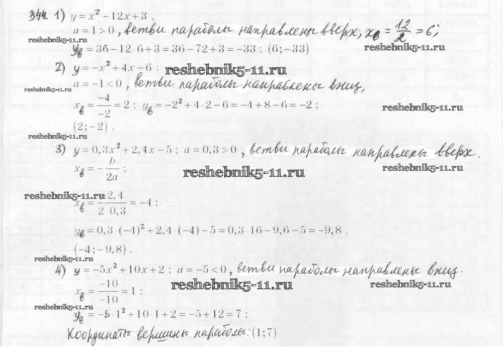 Готовая домашняя работа с ответами по Алгебре за 9 класс Мерзляк, Полонский, Якир Учебник Алгоритм успеха Вентана-граф 2016 ФГОС - Упражнения 344
