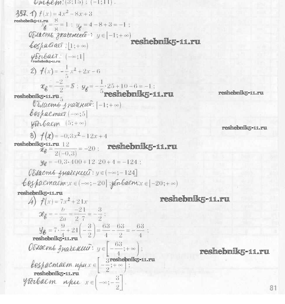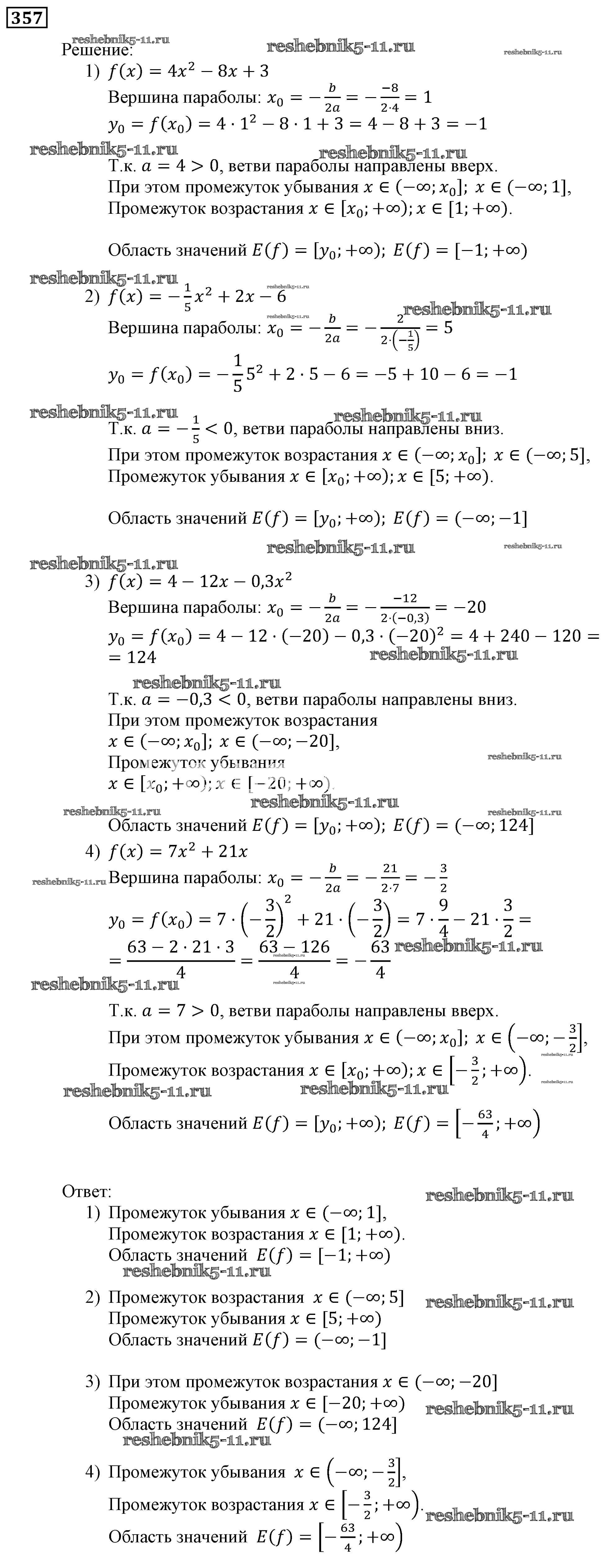Готовая домашняя работа с ответами по Алгебре за 9 класс Мерзляк, Полонский, Якир Учебник Алгоритм успеха Вентана-граф 2016 ФГОС - Упражнения 357