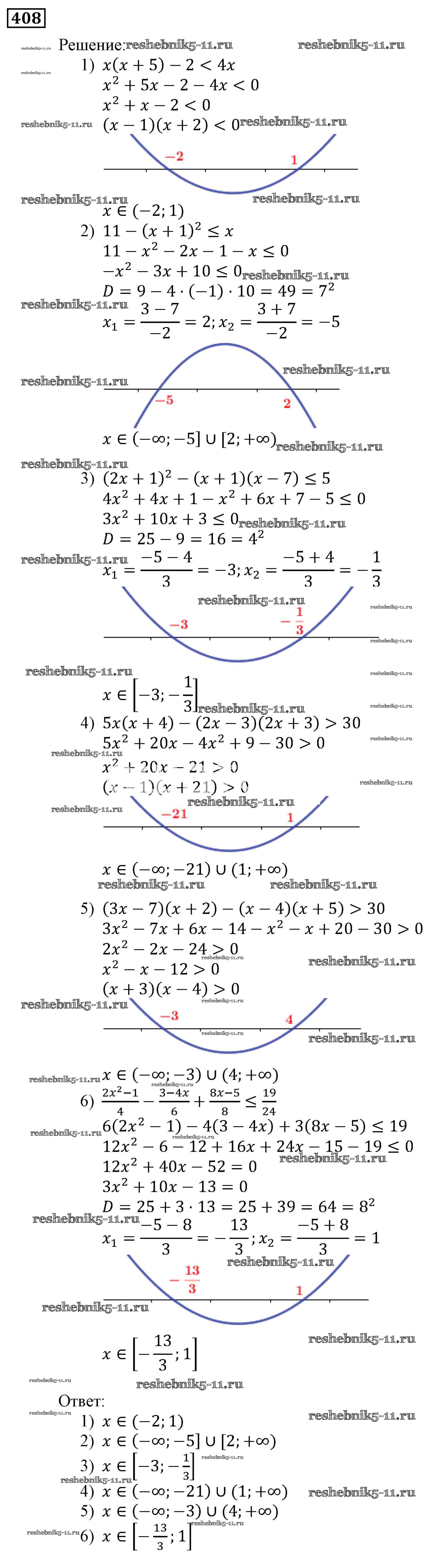 Готовая домашняя работа с ответами по Алгебре за 9 класс Мерзляк, Полонский, Якир Учебник Алгоритм успеха Вентана-граф 2016 ФГОС - Упражнения 408