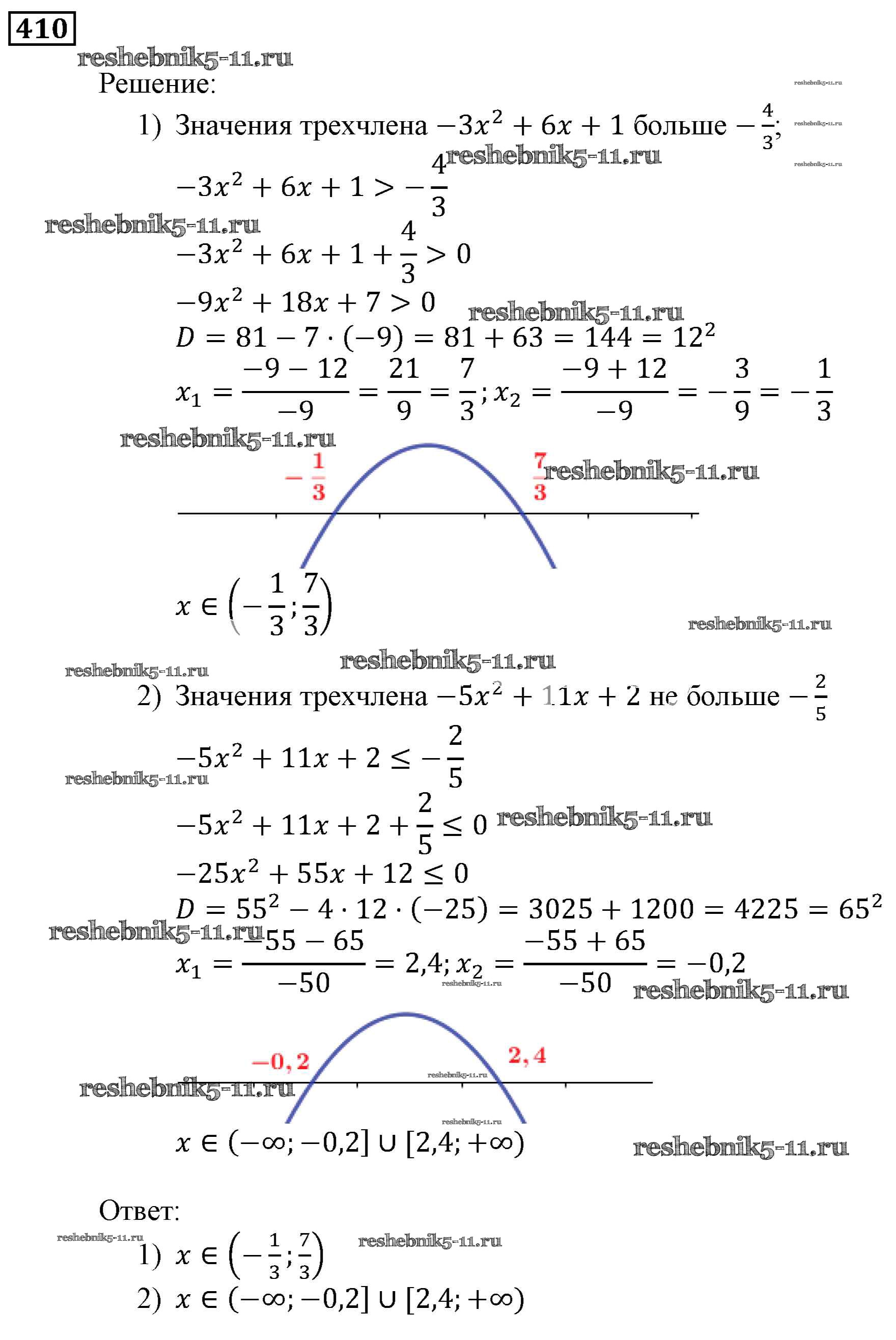 Готовая домашняя работа с ответами по Алгебре за 9 класс Мерзляк, Полонский, Якир Учебник Алгоритм успеха Вентана-граф 2016 ФГОС - Упражнения 410