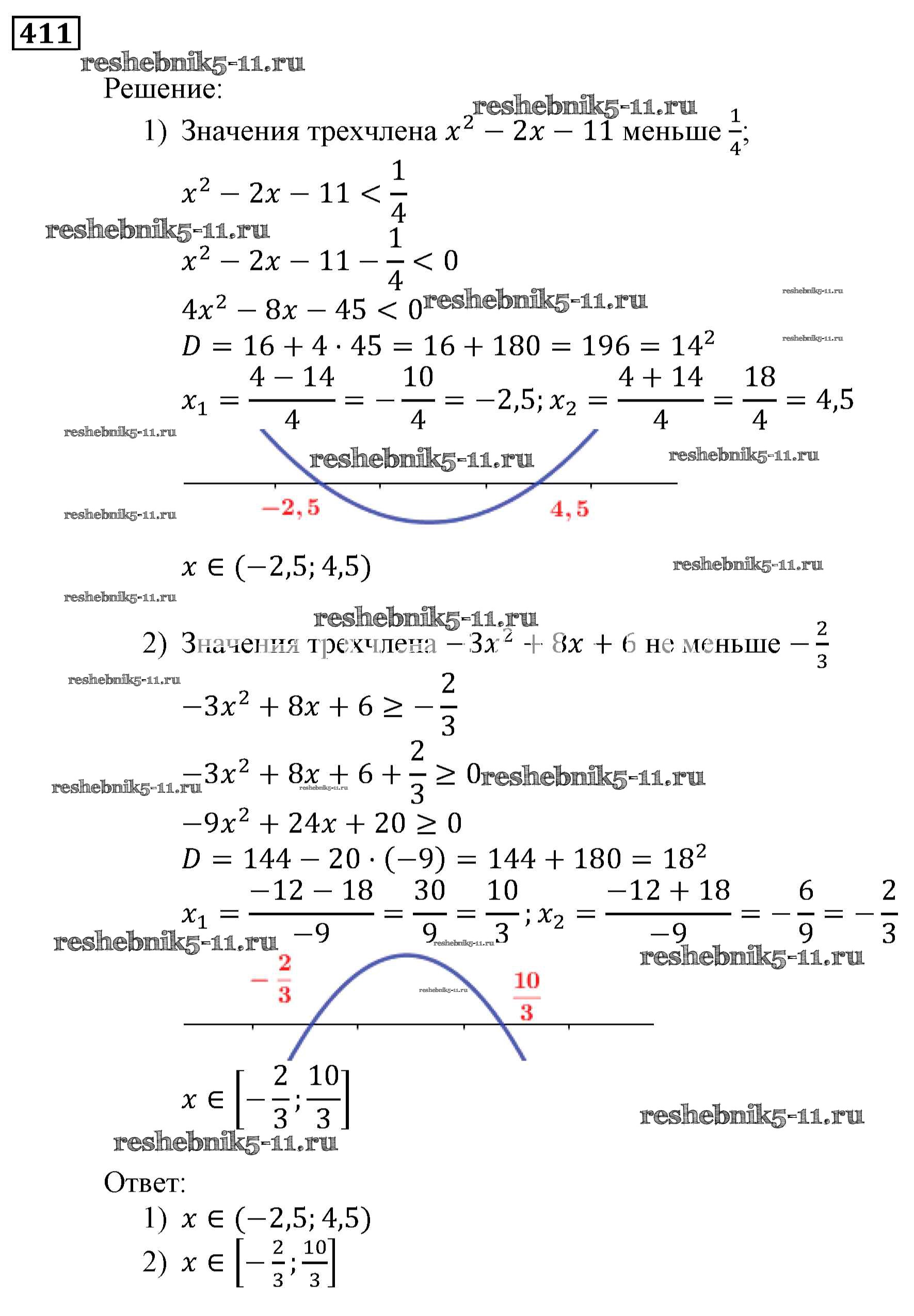 Готовая домашняя работа с ответами по Алгебре за 9 класс Мерзляк, Полонский, Якир Учебник Алгоритм успеха Вентана-граф 2016 ФГОС - Упражнения 411