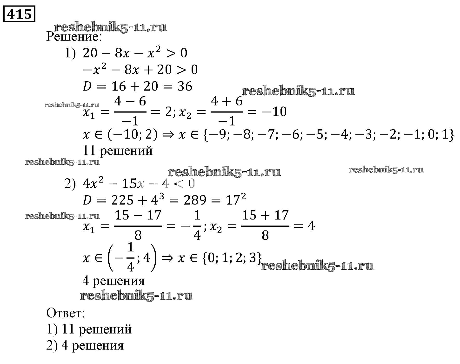 Готовая домашняя работа с ответами по Алгебре за 9 класс Мерзляк, Полонский, Якир Учебник Алгоритм успеха Вентана-граф 2016 ФГОС - Упражнения 415