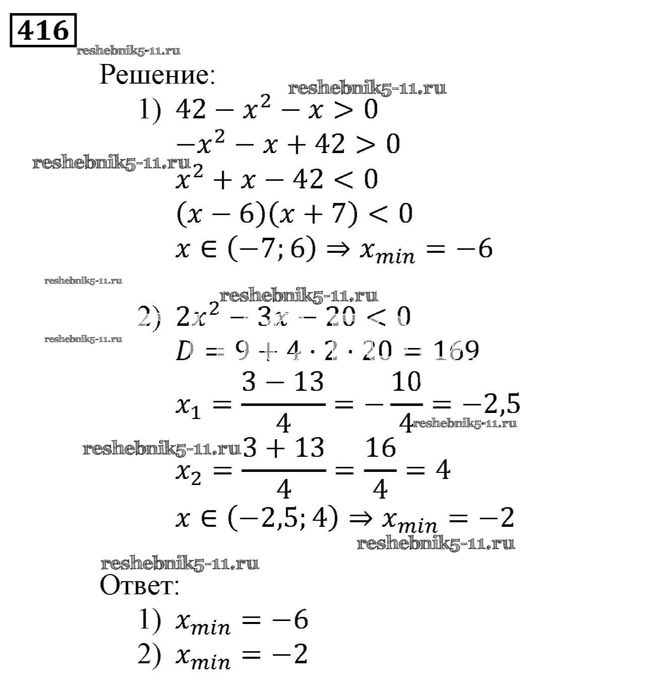 Готовая домашняя работа с ответами по Алгебре за 9 класс Мерзляк, Полонский, Якир Учебник Алгоритм успеха Вентана-граф 2016 ФГОС - Упражнения 416