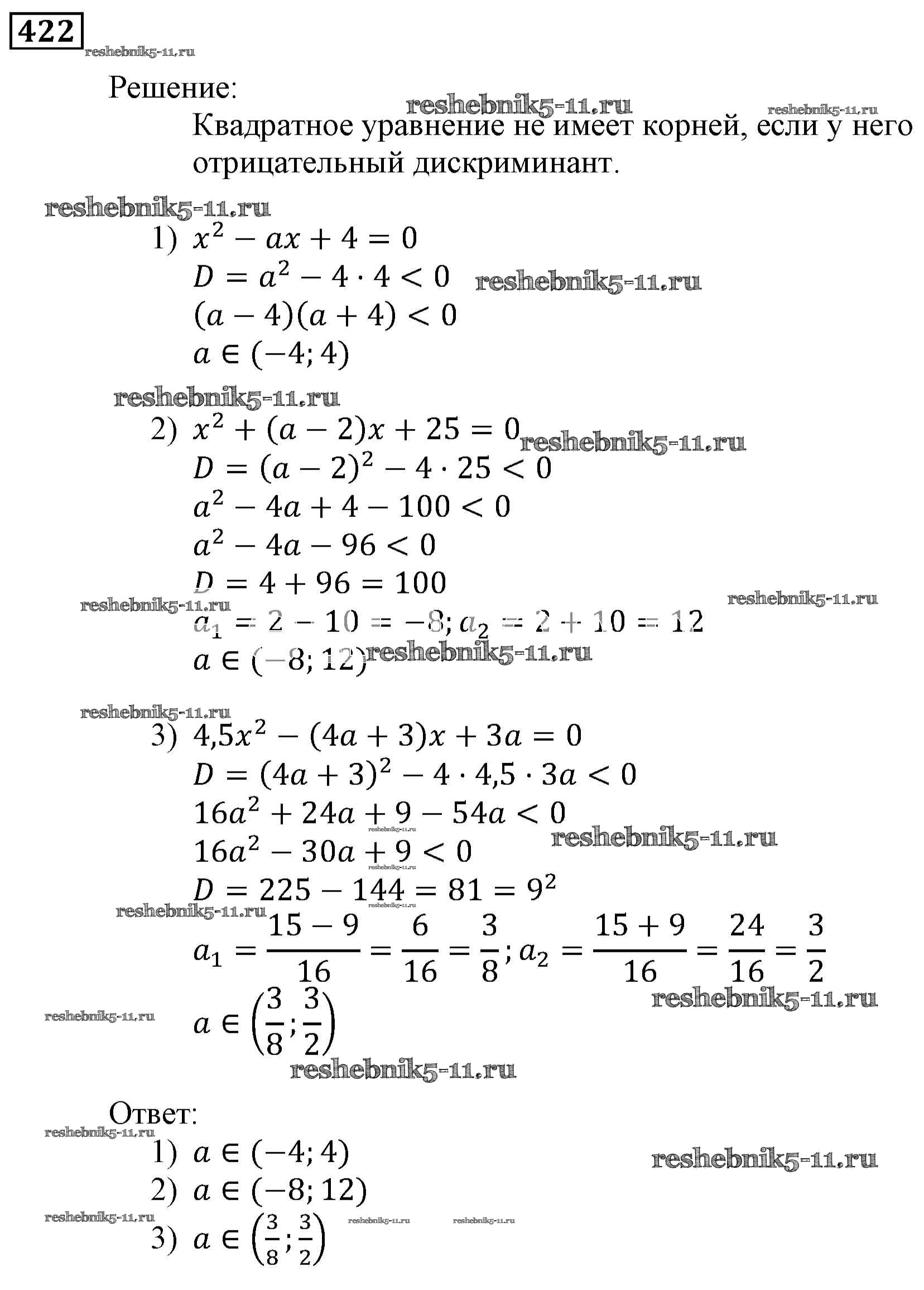 Готовая домашняя работа с ответами по Алгебре за 9 класс Мерзляк, Полонский, Якир Учебник Алгоритм успеха Вентана-граф 2016 ФГОС - Упражнения 422