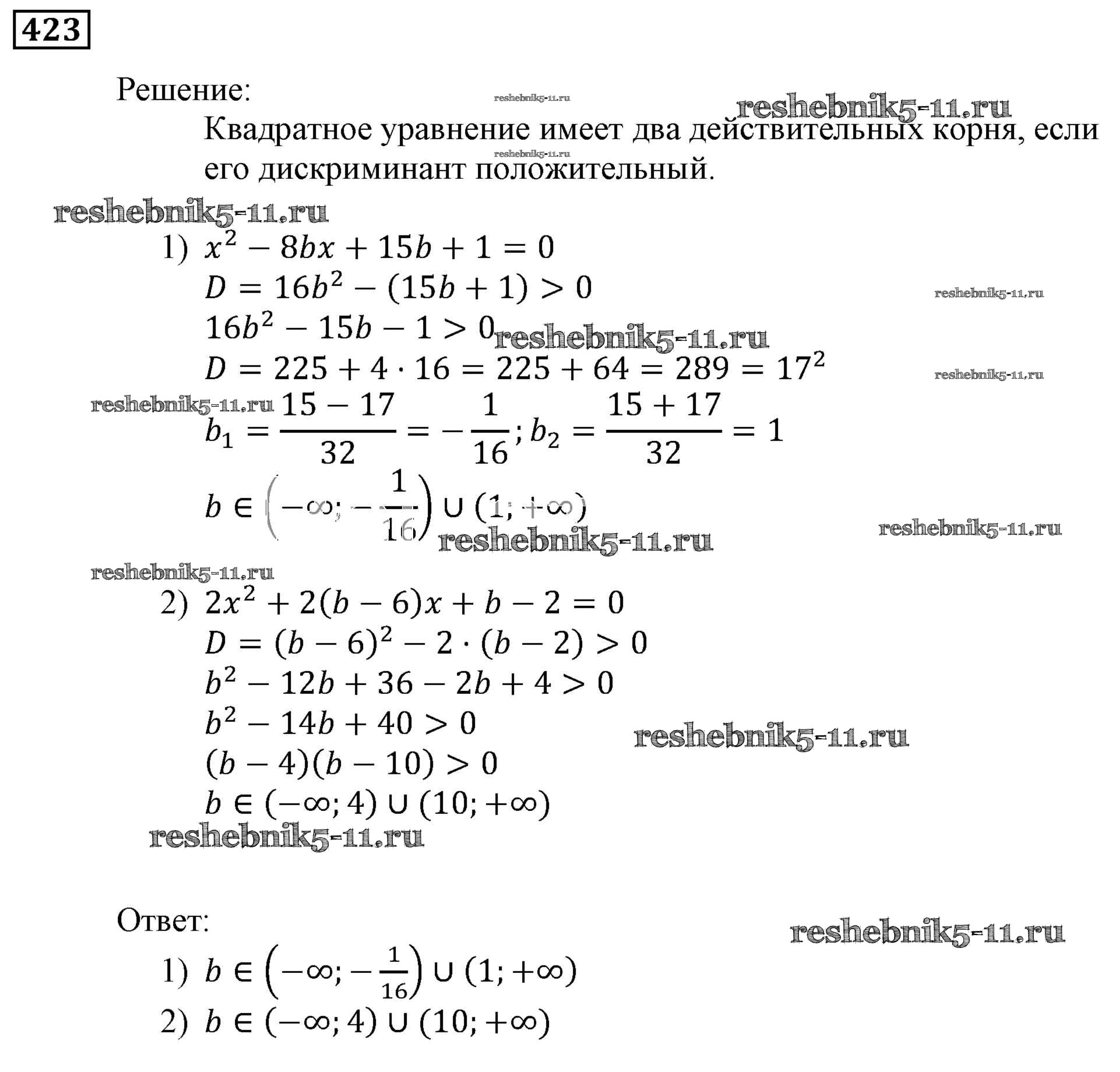 Готовая домашняя работа с ответами по Алгебре за 9 класс Мерзляк, Полонский, Якир Учебник Алгоритм успеха Вентана-граф 2016 ФГОС - Упражнения 423