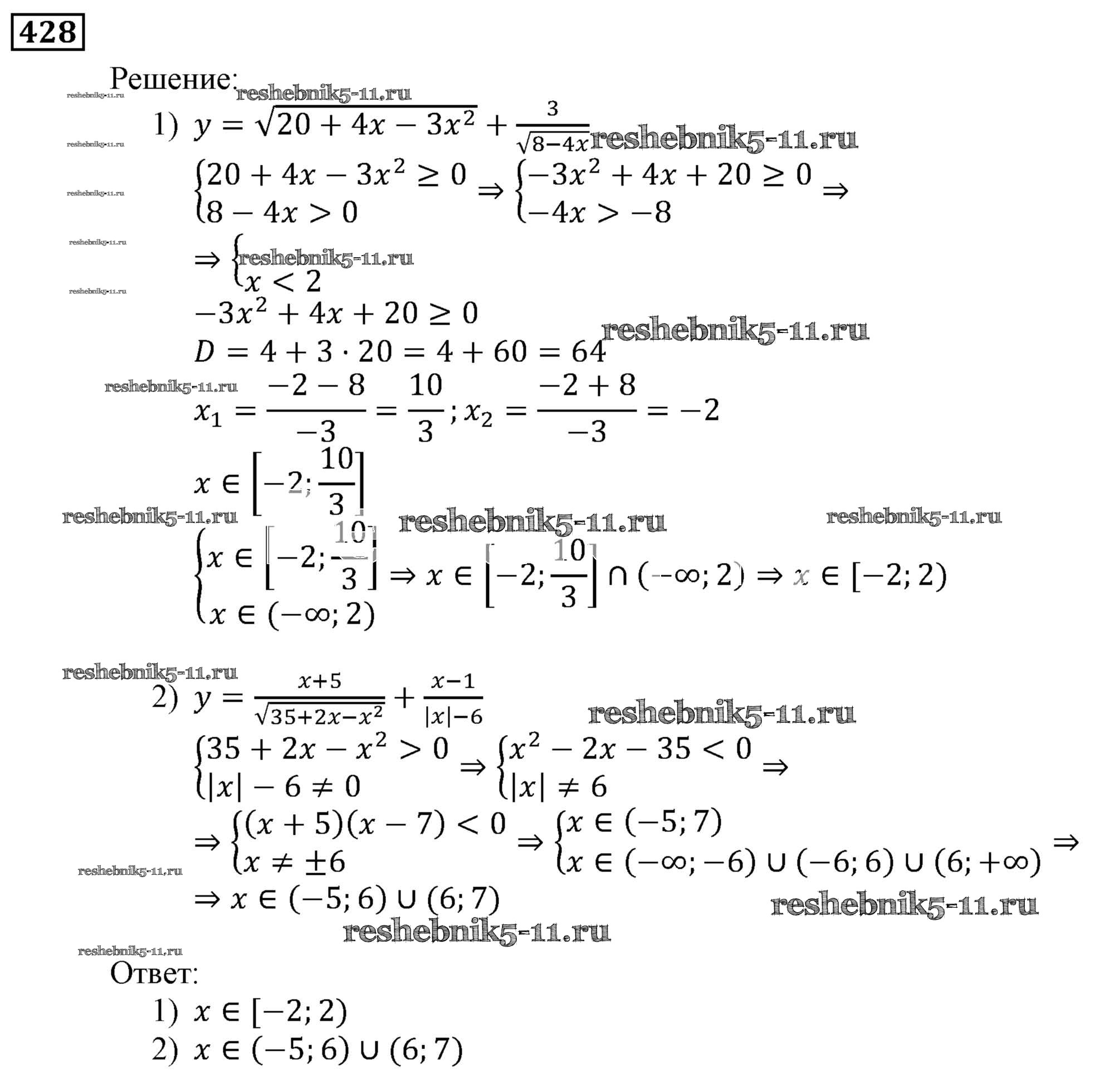 Готовая домашняя работа с ответами по Алгебре за 9 класс Мерзляк, Полонский, Якир Учебник Алгоритм успеха Вентана-граф 2016 ФГОС - Упражнения 428