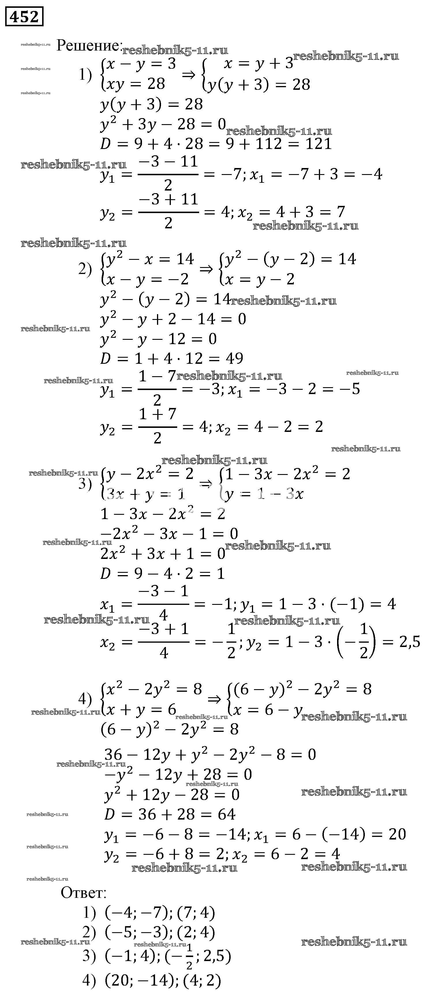 Готовая домашняя работа с ответами по Алгебре за 9 класс Мерзляк, Полонский, Якир Учебник Алгоритм успеха Вентана-граф 2016 ФГОС - Упражнения 452