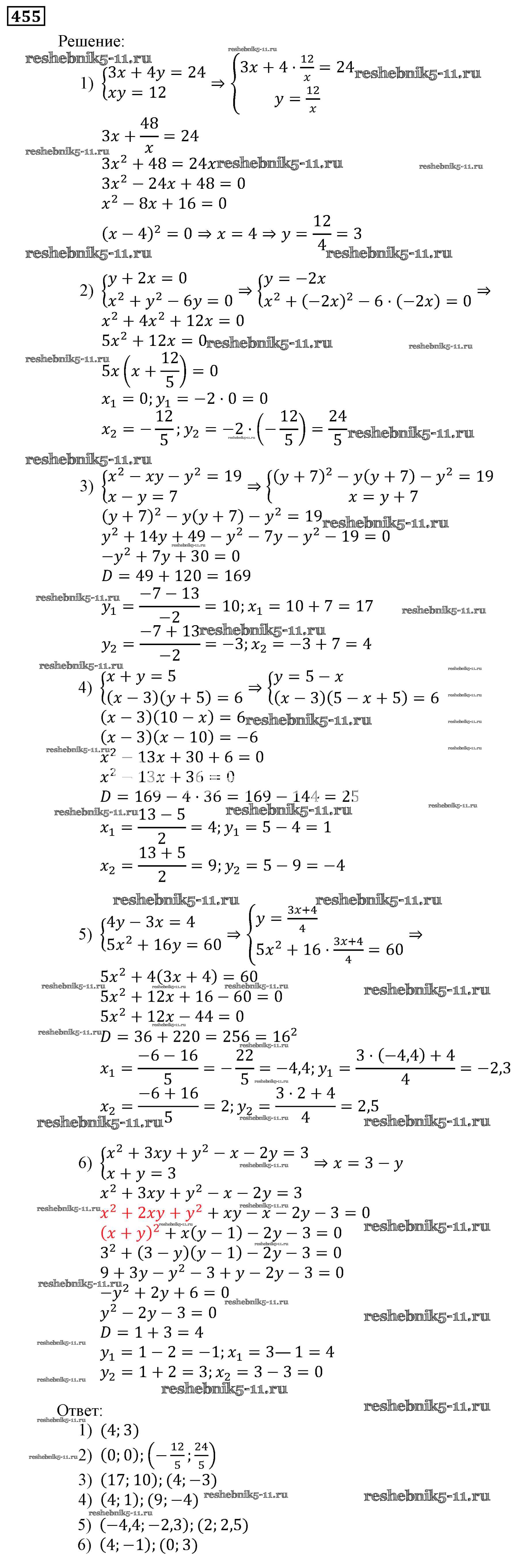 Готовая домашняя работа с ответами по Алгебре за 9 класс Мерзляк, Полонский, Якир Учебник Алгоритм успеха Вентана-граф 2016 ФГОС - Упражнения 455