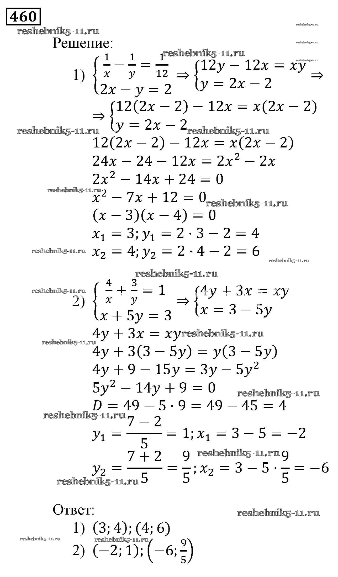 Готовая домашняя работа с ответами по Алгебре за 9 класс Мерзляк, Полонский, Якир Учебник Алгоритм успеха Вентана-граф 2016 ФГОС - Упражнения 460