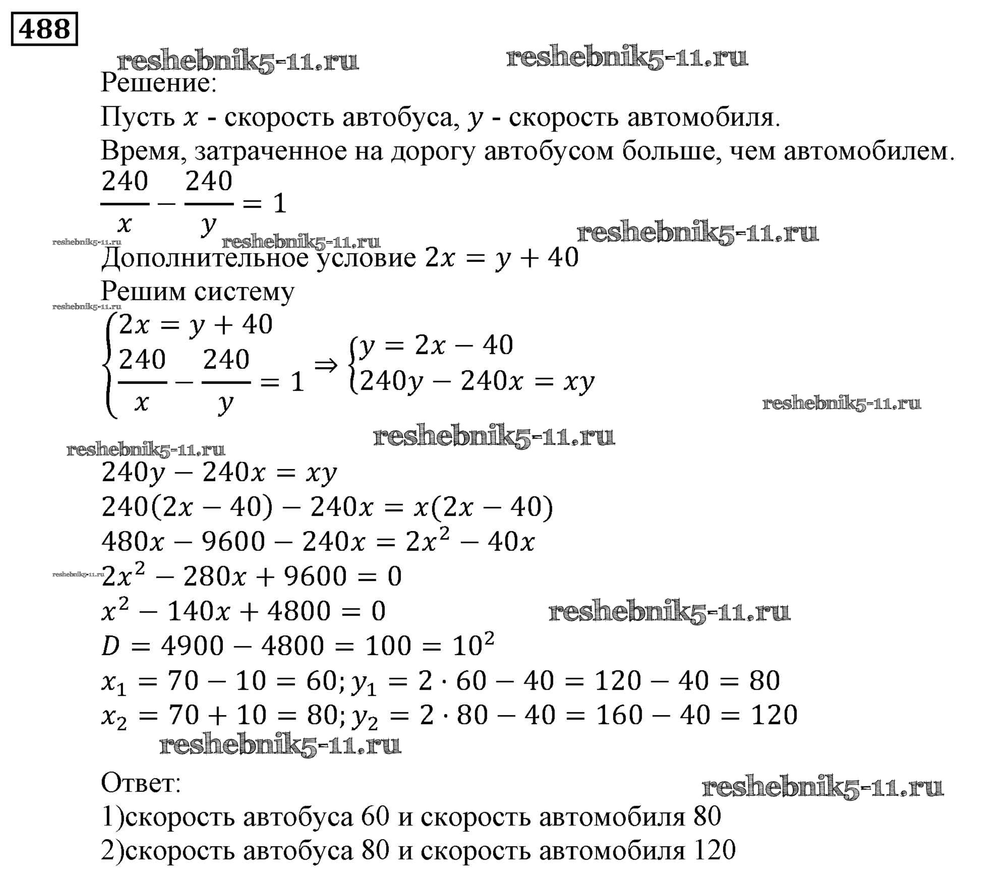 Готовая домашняя работа с ответами по Алгебре за 9 класс Мерзляк, Полонский, Якир Учебник Алгоритм успеха Вентана-граф 2016 ФГОС - Упражнения 488