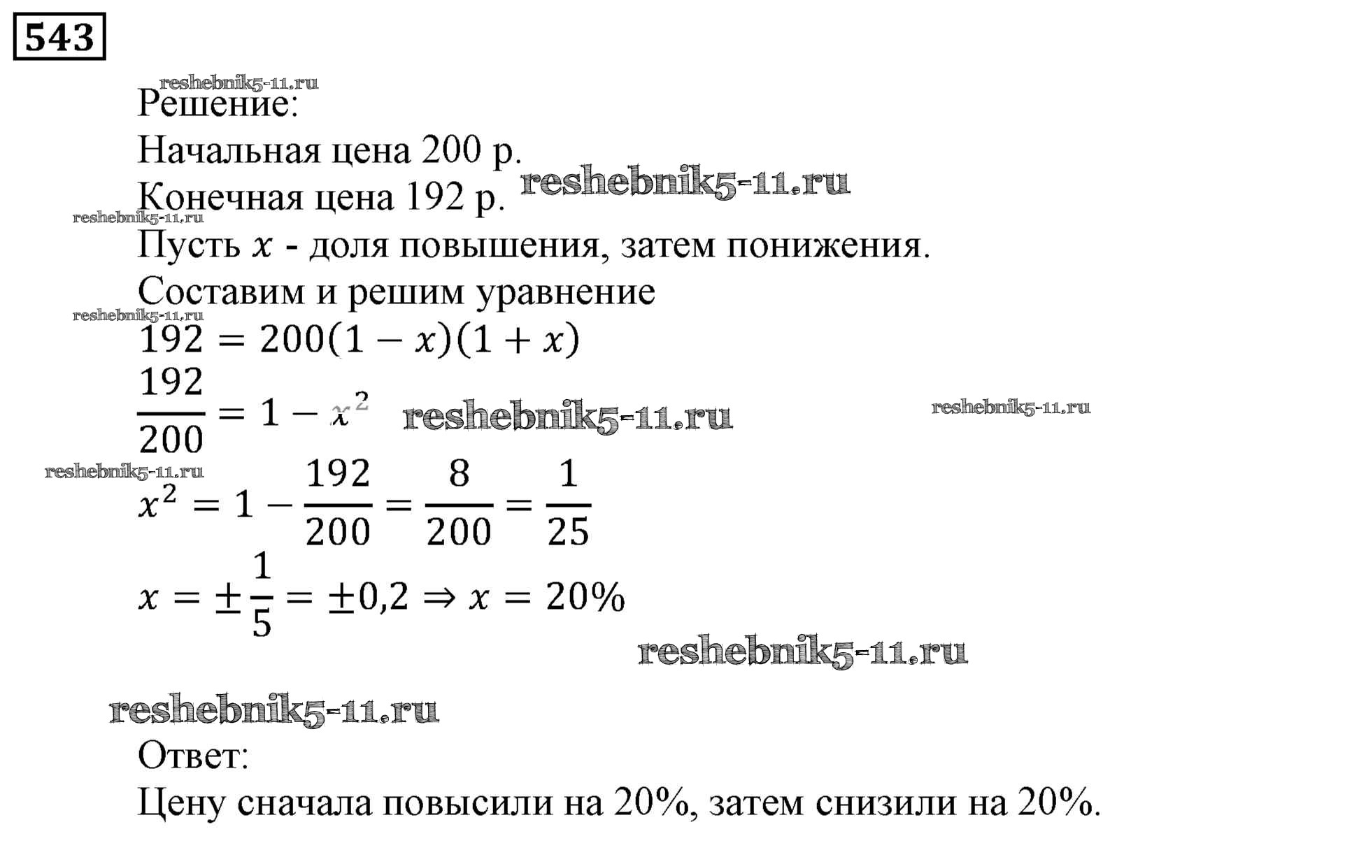 Готовая домашняя работа с ответами по Алгебре за 9 класс Мерзляк, Полонский, Якир Учебник Алгоритм успеха Вентана-граф 2016 ФГОС - Упражнения 543