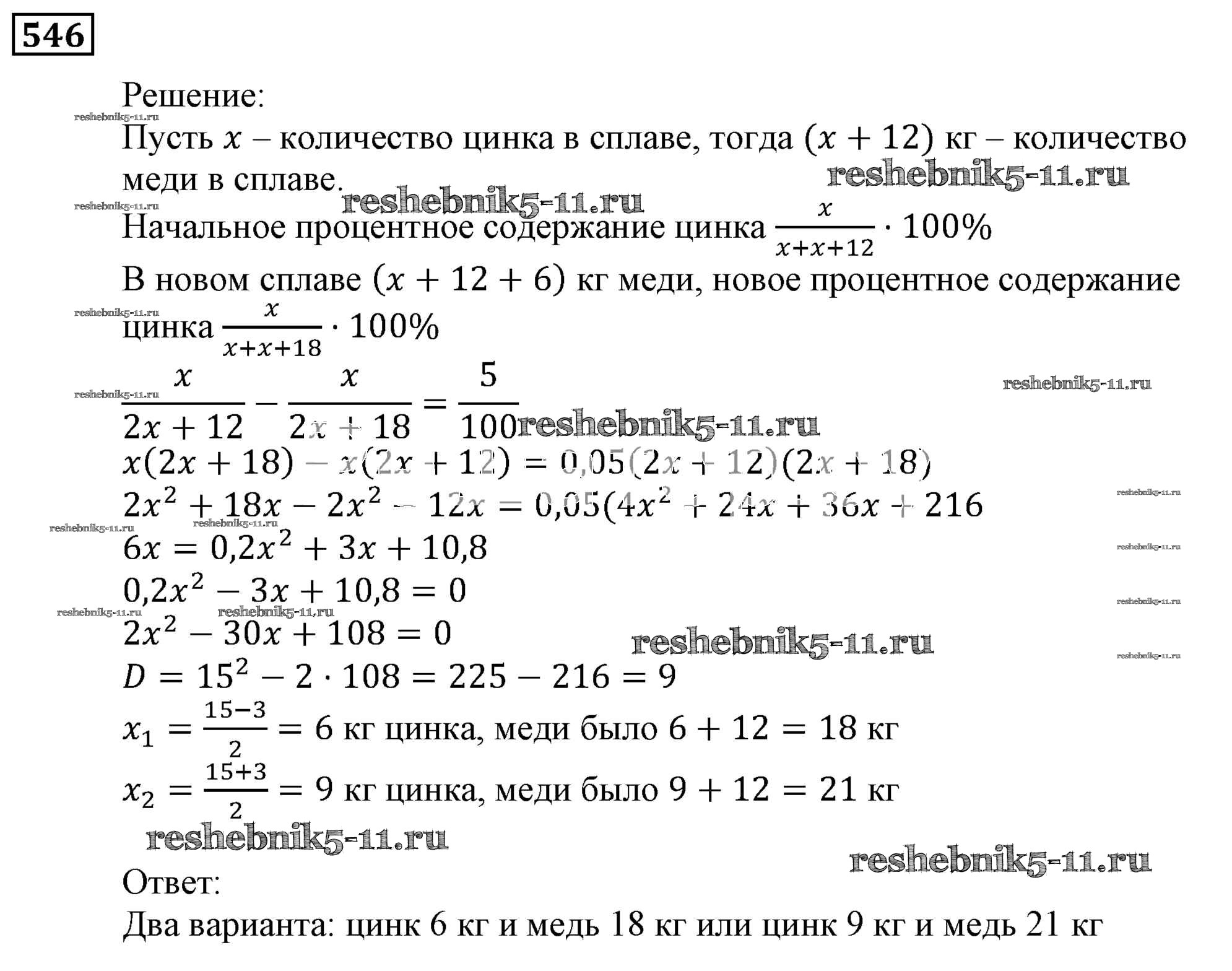 Готовая домашняя работа с ответами по Алгебре за 9 класс Мерзляк, Полонский, Якир Учебник Алгоритм успеха Вентана-граф 2016 ФГОС - Упражнения 546