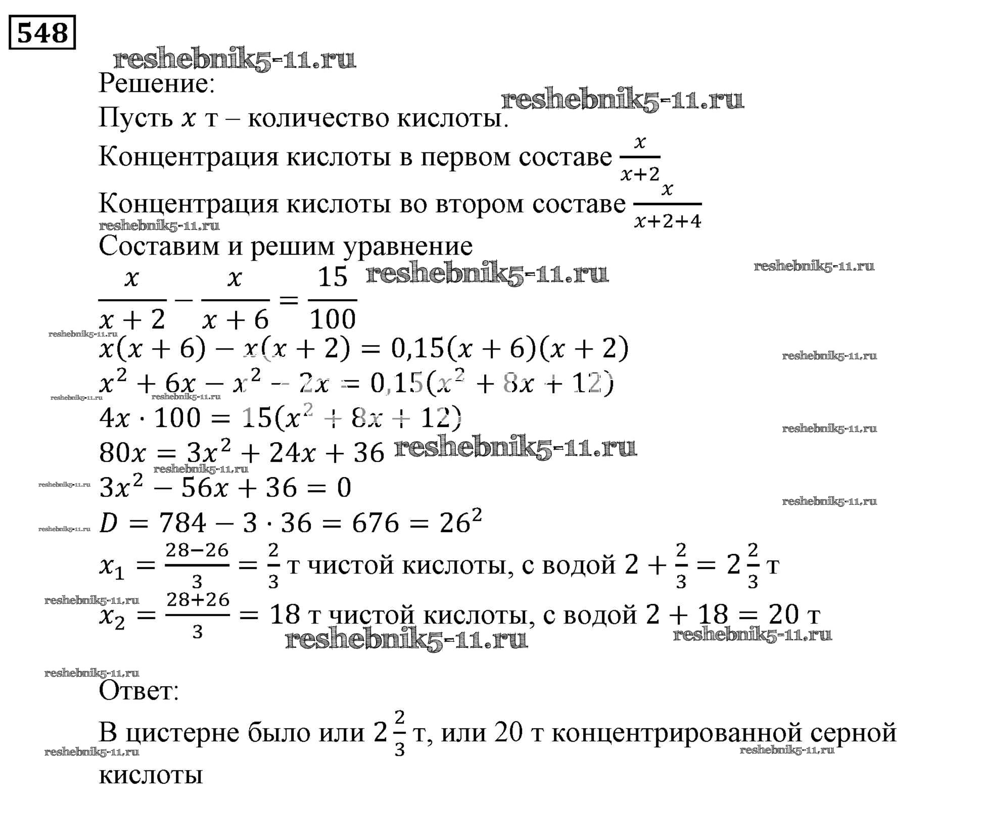 Готовая домашняя работа с ответами по Алгебре за 9 класс Мерзляк, Полонский, Якир Учебник Алгоритм успеха Вентана-граф 2016 ФГОС - Упражнения 548