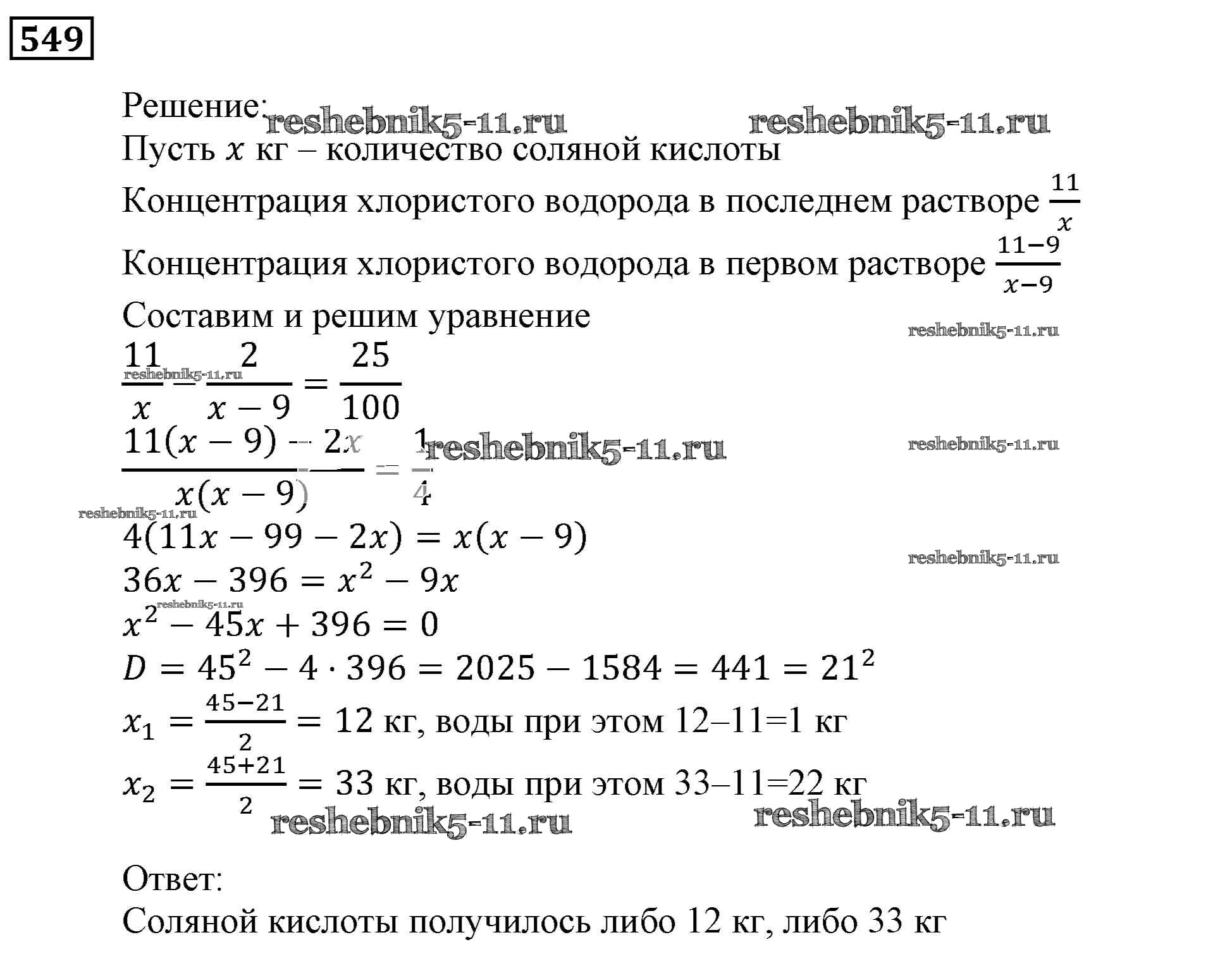 Готовая домашняя работа с ответами по Алгебре за 9 класс Мерзляк, Полонский, Якир Учебник Алгоритм успеха Вентана-граф 2016 ФГОС - Упражнения 549