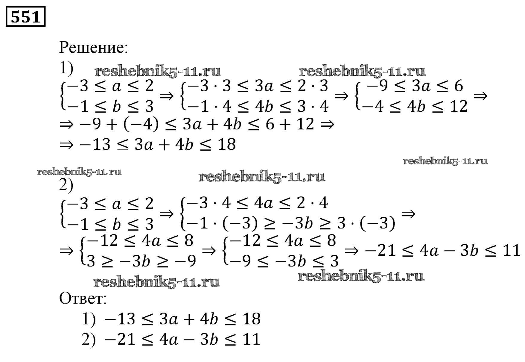 Готовая домашняя работа с ответами по Алгебре за 9 класс Мерзляк, Полонский, Якир Учебник Алгоритм успеха Вентана-граф 2016 ФГОС - Упражнения 551