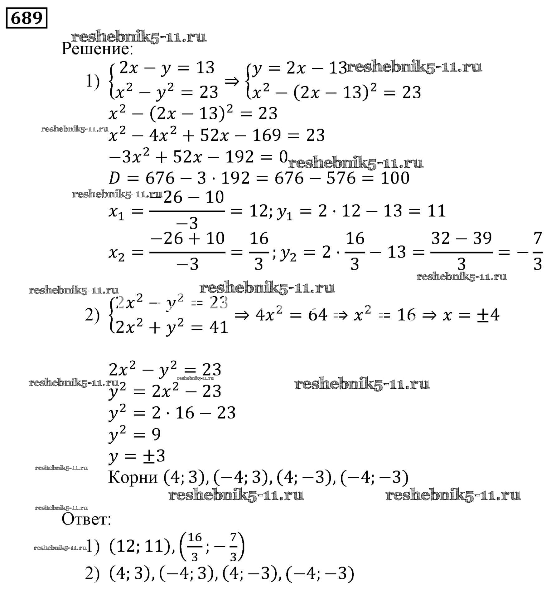 Готовая домашняя работа с ответами по Алгебре за 9 класс Мерзляк, Полонский, Якир Учебник Алгоритм успеха Вентана-граф 2016 ФГОС - Упражнения 689