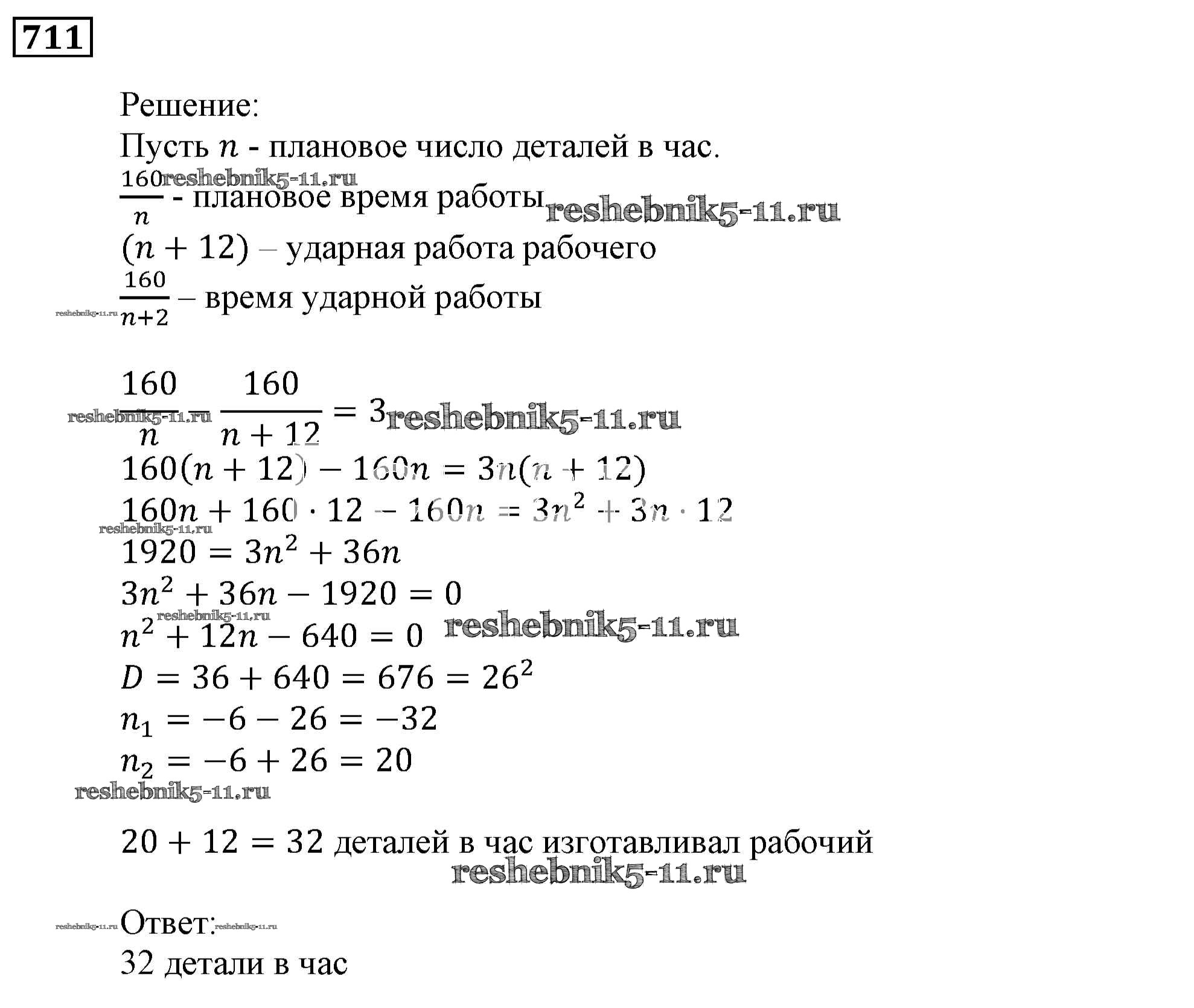 Готовая домашняя работа с ответами по Алгебре за 9 класс Мерзляк, Полонский, Якир Учебник Алгоритм успеха Вентана-граф 2016 ФГОС - Упражнения 711
