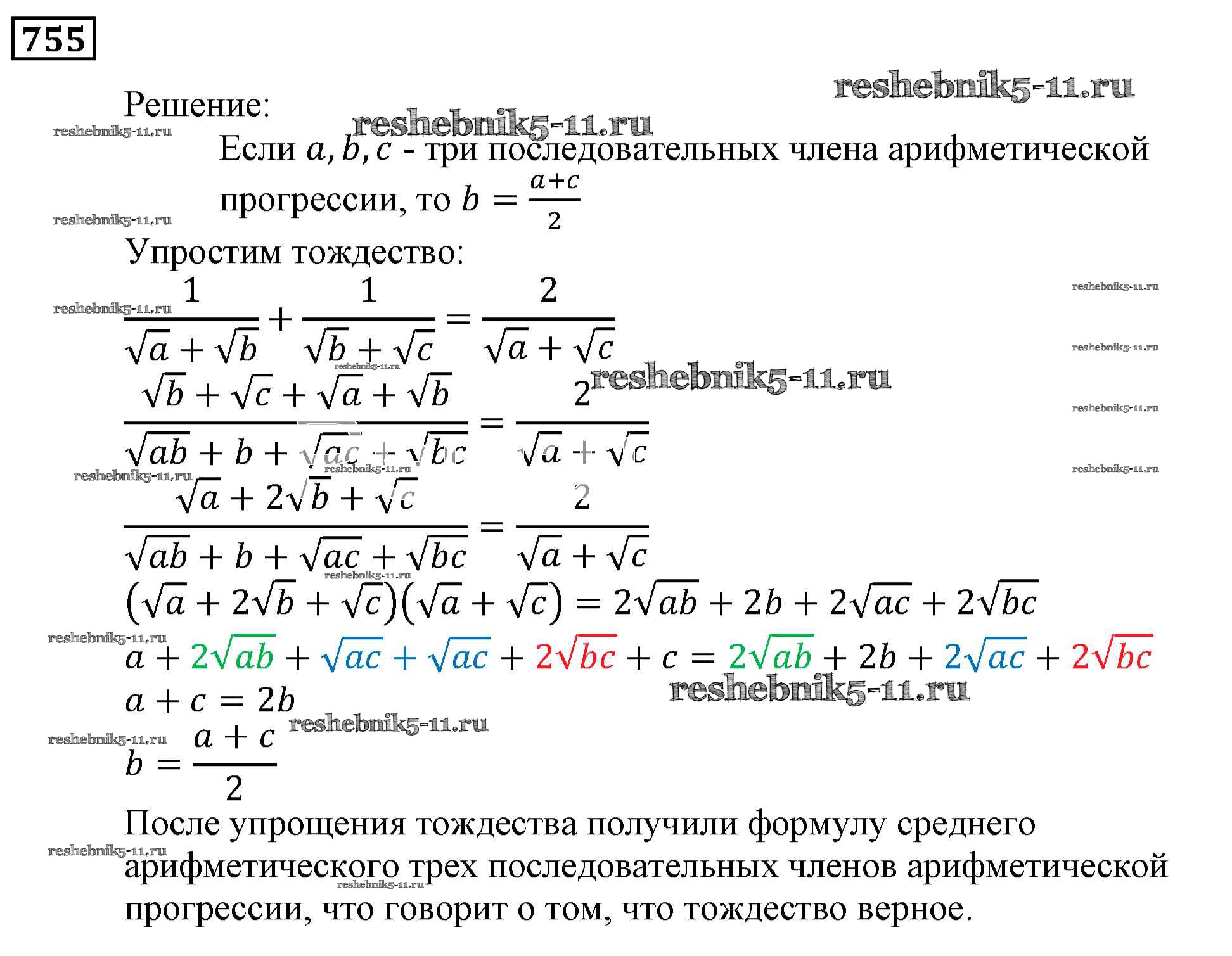 Готовая домашняя работа с ответами по Алгебре за 9 класс Мерзляк, Полонский, Якир Учебник Алгоритм успеха Вентана-граф 2016 ФГОС - Упражнения 755