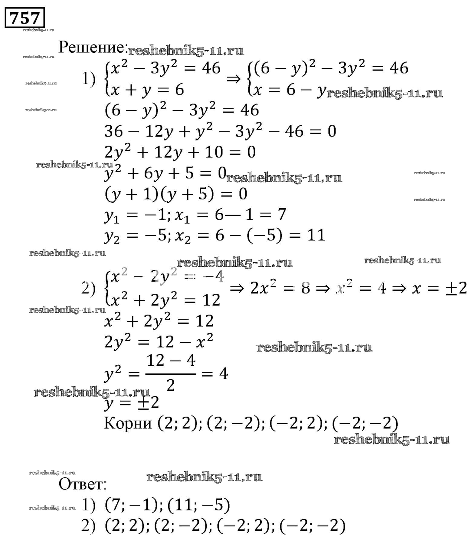 Готовая домашняя работа с ответами по Алгебре за 9 класс Мерзляк, Полонский, Якир Учебник Алгоритм успеха Вентана-граф 2016 ФГОС - Упражнения 757