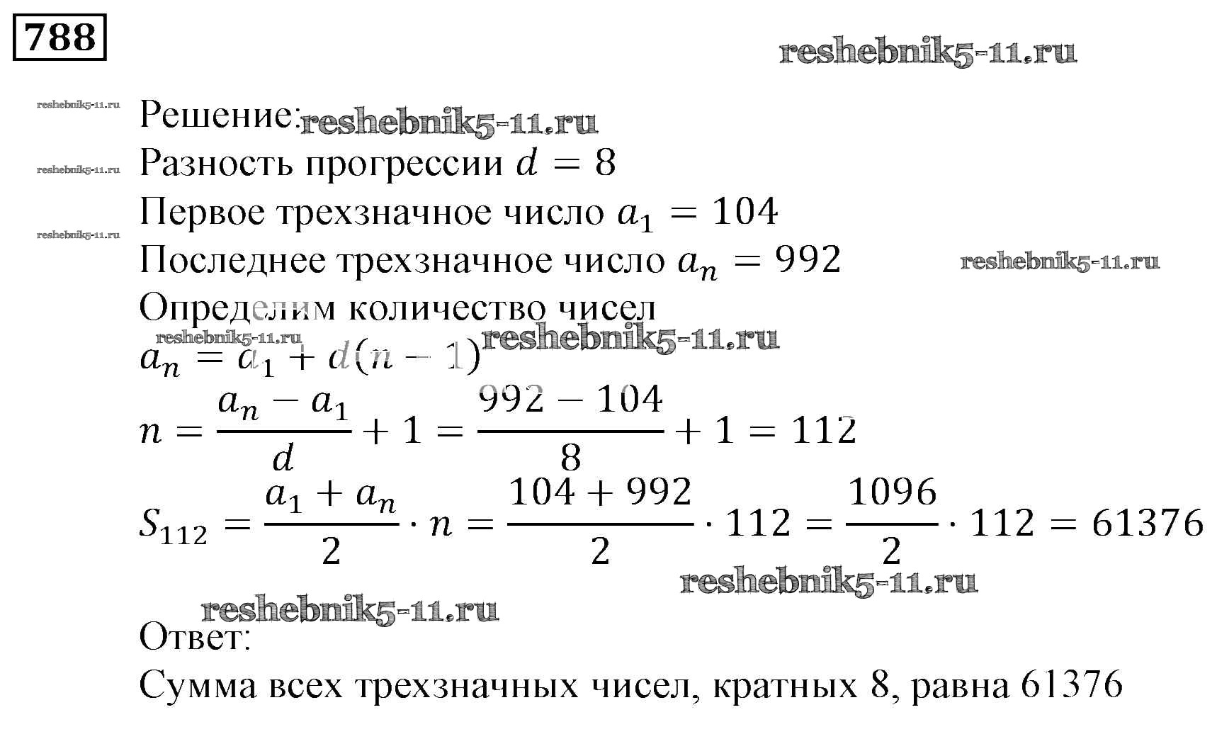 Готовая домашняя работа с ответами по Алгебре за 9 класс Мерзляк, Полонский, Якир Учебник Алгоритм успеха Вентана-граф 2016 ФГОС - Упражнения 788