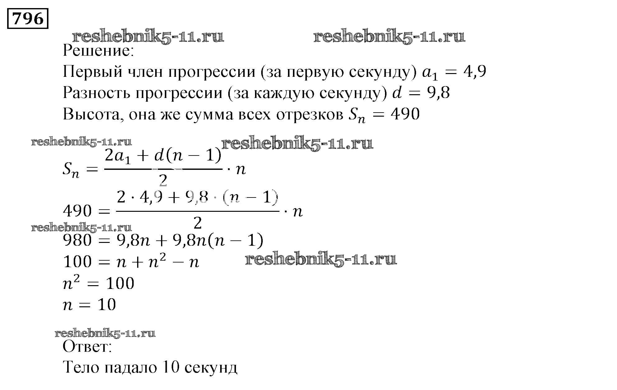 Готовая домашняя работа с ответами по Алгебре за 9 класс Мерзляк, Полонский, Якир Учебник Алгоритм успеха Вентана-граф 2016 ФГОС - Упражнения 796