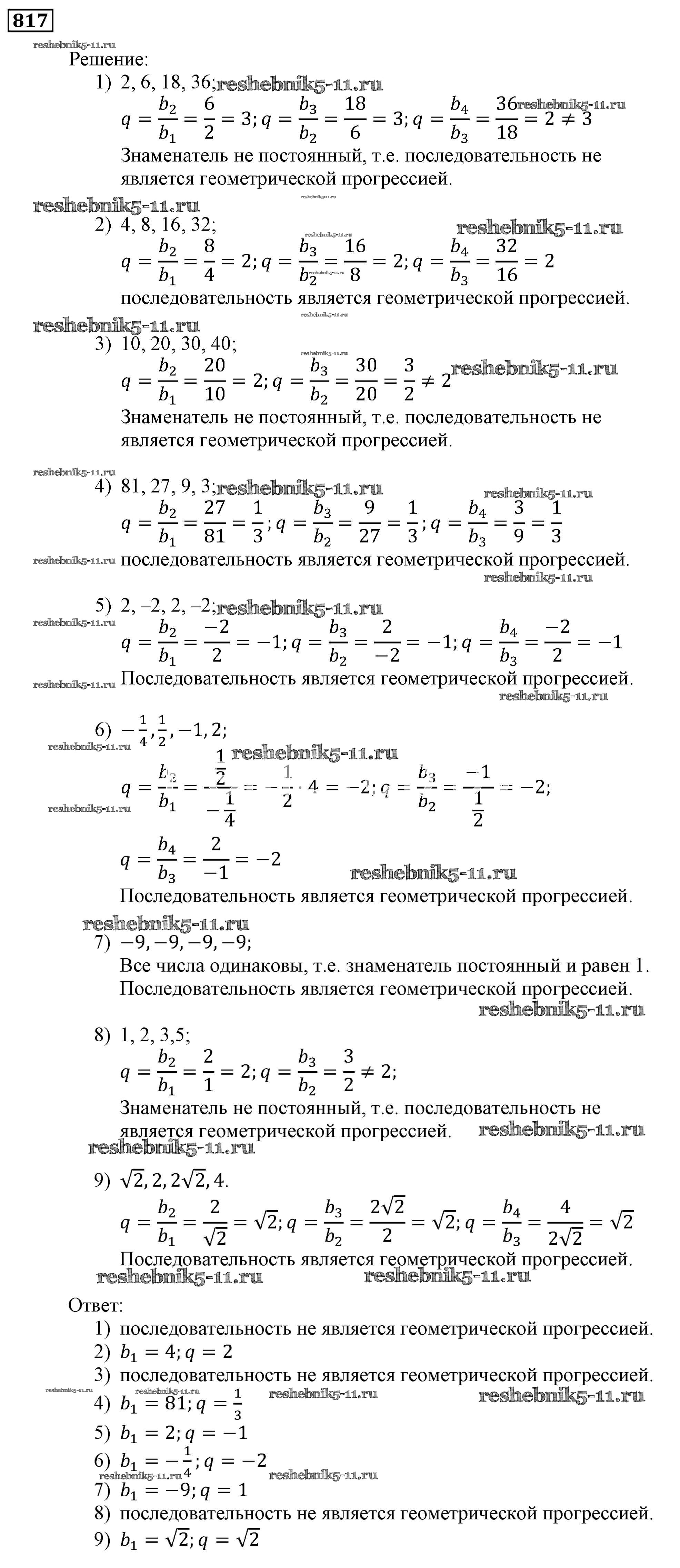 Готовая домашняя работа с ответами по Алгебре за 9 класс Мерзляк, Полонский, Якир Учебник Алгоритм успеха Вентана-граф 2016 ФГОС - Упражнения 817