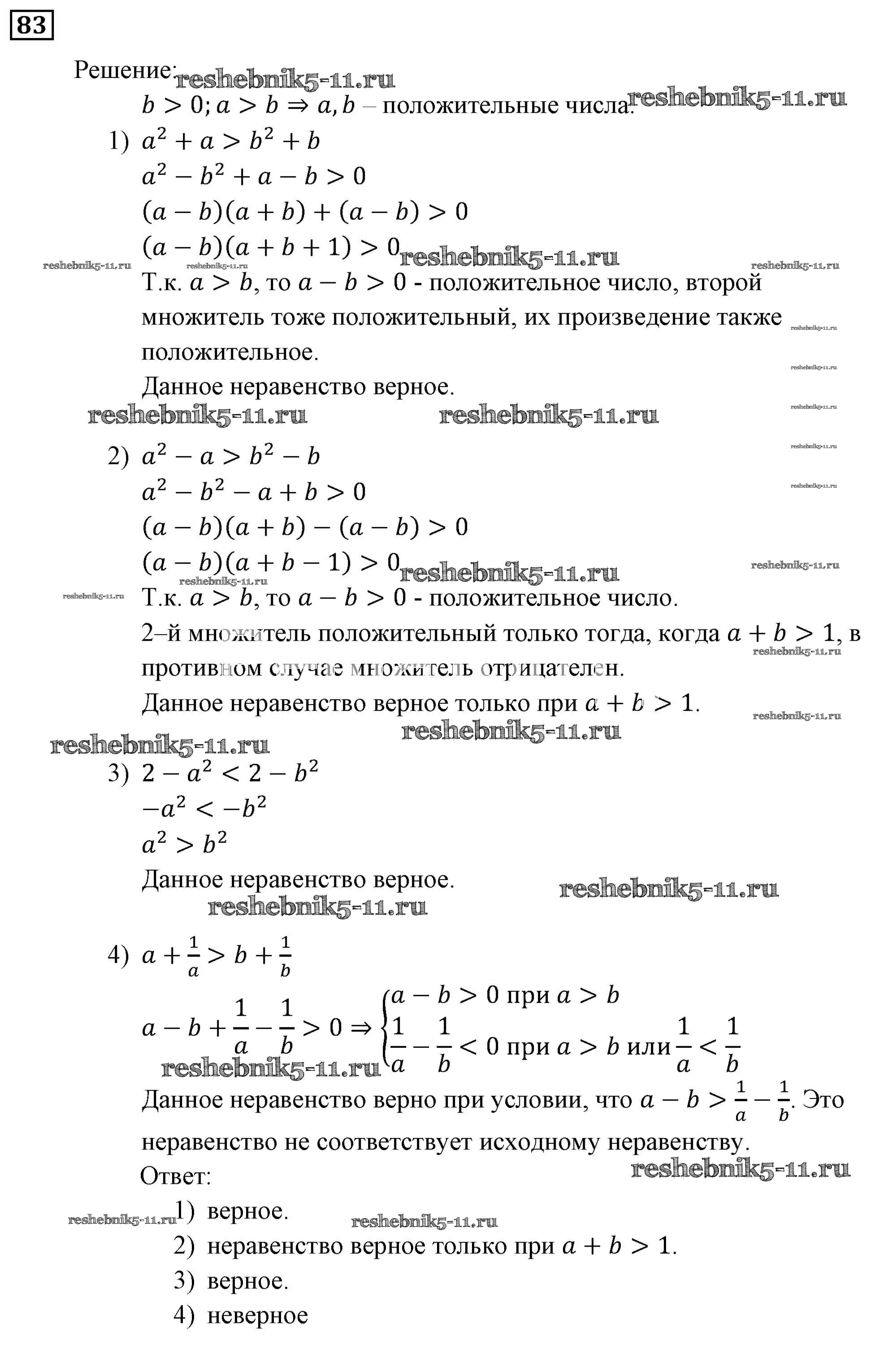 Готовая домашняя работа с ответами по Алгебре за 9 класс Мерзляк, Полонский, Якир Учебник Алгоритм успеха Вентана-граф 2016 ФГОС - Упражнения 83