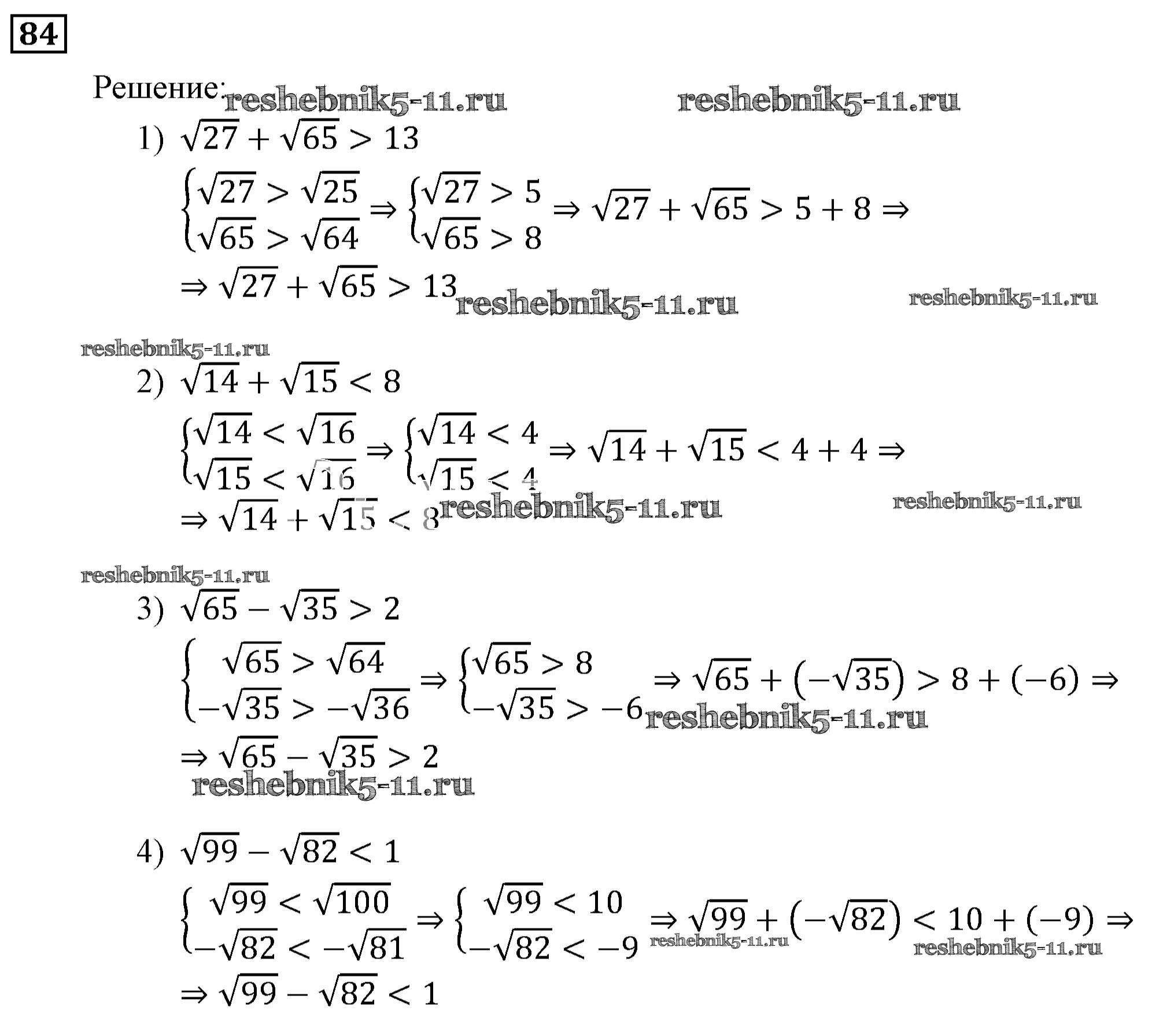 Готовая домашняя работа с ответами по Алгебре за 9 класс Мерзляк, Полонский, Якир Учебник Алгоритм успеха Вентана-граф 2016 ФГОС - Упражнения 84