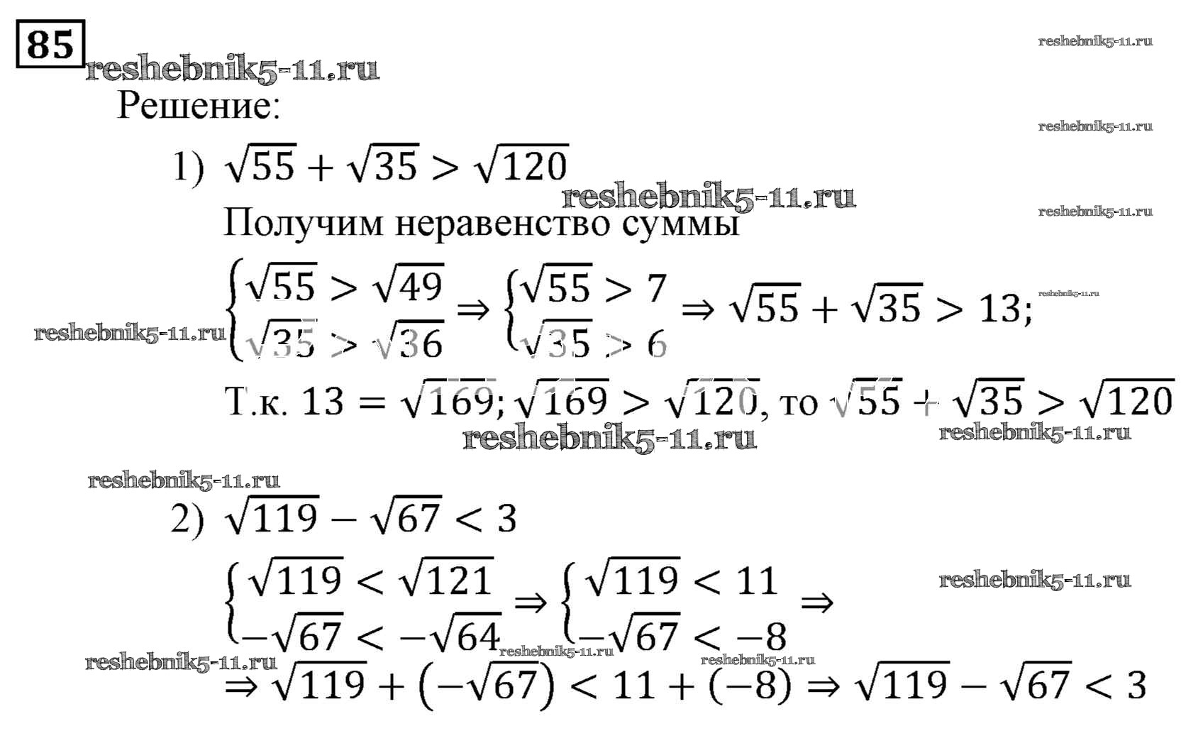 Готовая домашняя работа с ответами по Алгебре за 9 класс Мерзляк, Полонский, Якир Учебник Алгоритм успеха Вентана-граф 2016 ФГОС - Упражнения 85