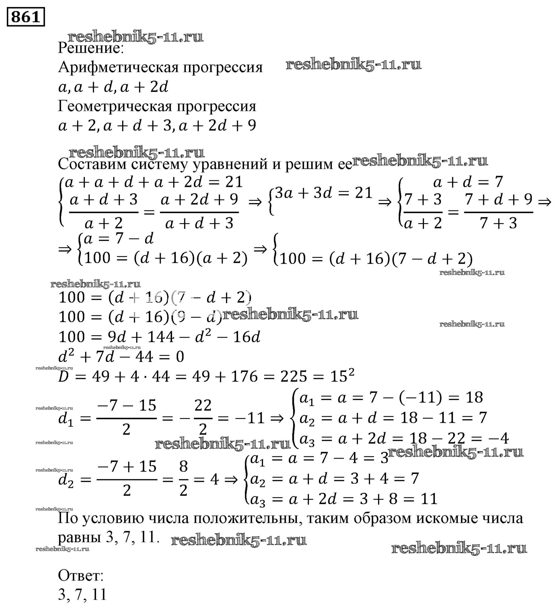 Готовая домашняя работа с ответами по Алгебре за 9 класс Мерзляк, Полонский, Якир Учебник Алгоритм успеха Вентана-граф 2016 ФГОС - Упражнения 861