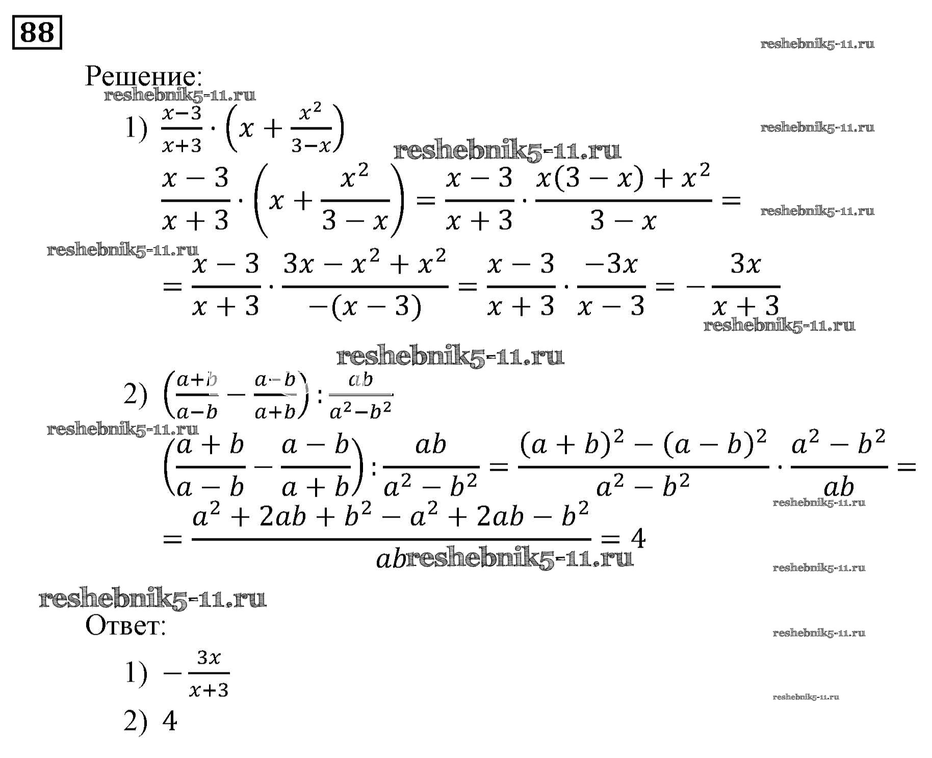 Готовая домашняя работа с ответами по Алгебре за 9 класс Мерзляк, Полонский, Якир Учебник Алгоритм успеха Вентана-граф 2016 ФГОС - Упражнения 88