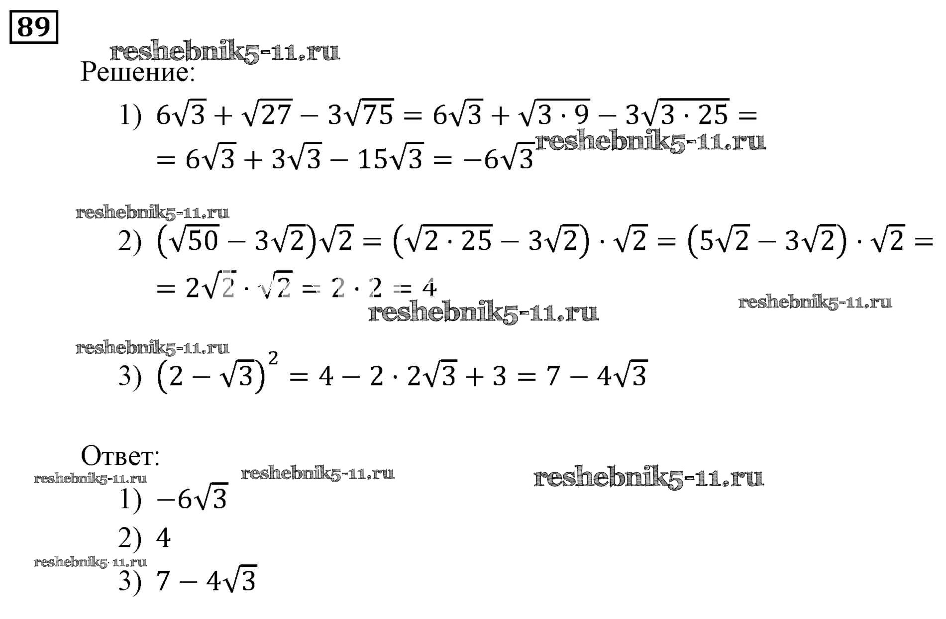 Готовая домашняя работа с ответами по Алгебре за 9 класс Мерзляк, Полонский, Якир Учебник Алгоритм успеха Вентана-граф 2016 ФГОС - Упражнения 89