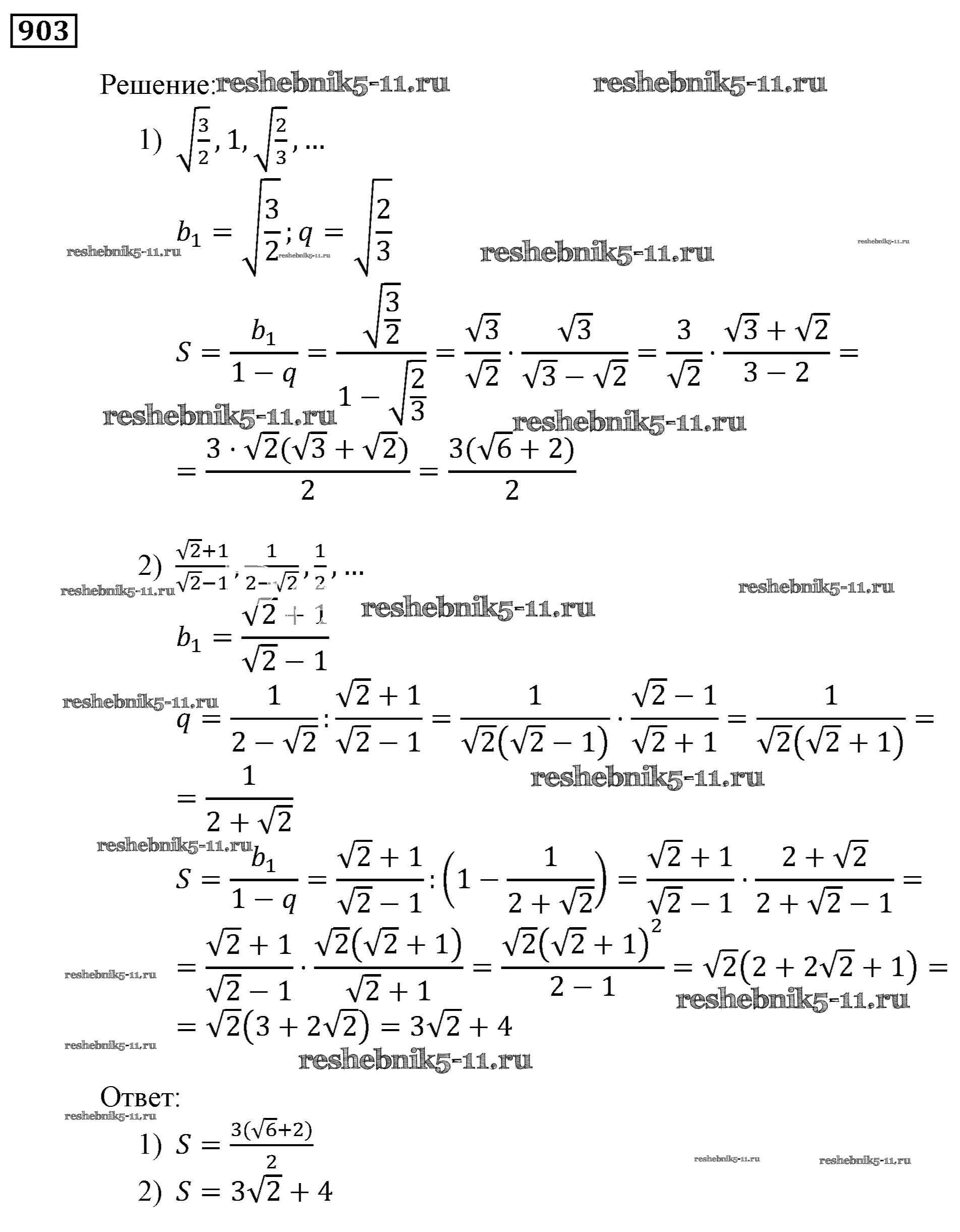 Готовая домашняя работа с ответами по Алгебре за 9 класс Мерзляк, Полонский, Якир Учебник Алгоритм успеха Вентана-граф 2016 ФГОС - Упражнения 903
