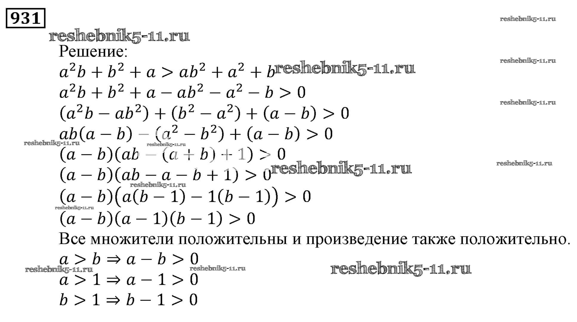 Готовая домашняя работа с ответами по Алгебре за 9 класс Мерзляк, Полонский, Якир Учебник Алгоритм успеха Вентана-граф 2016 ФГОС - Упражнения 931