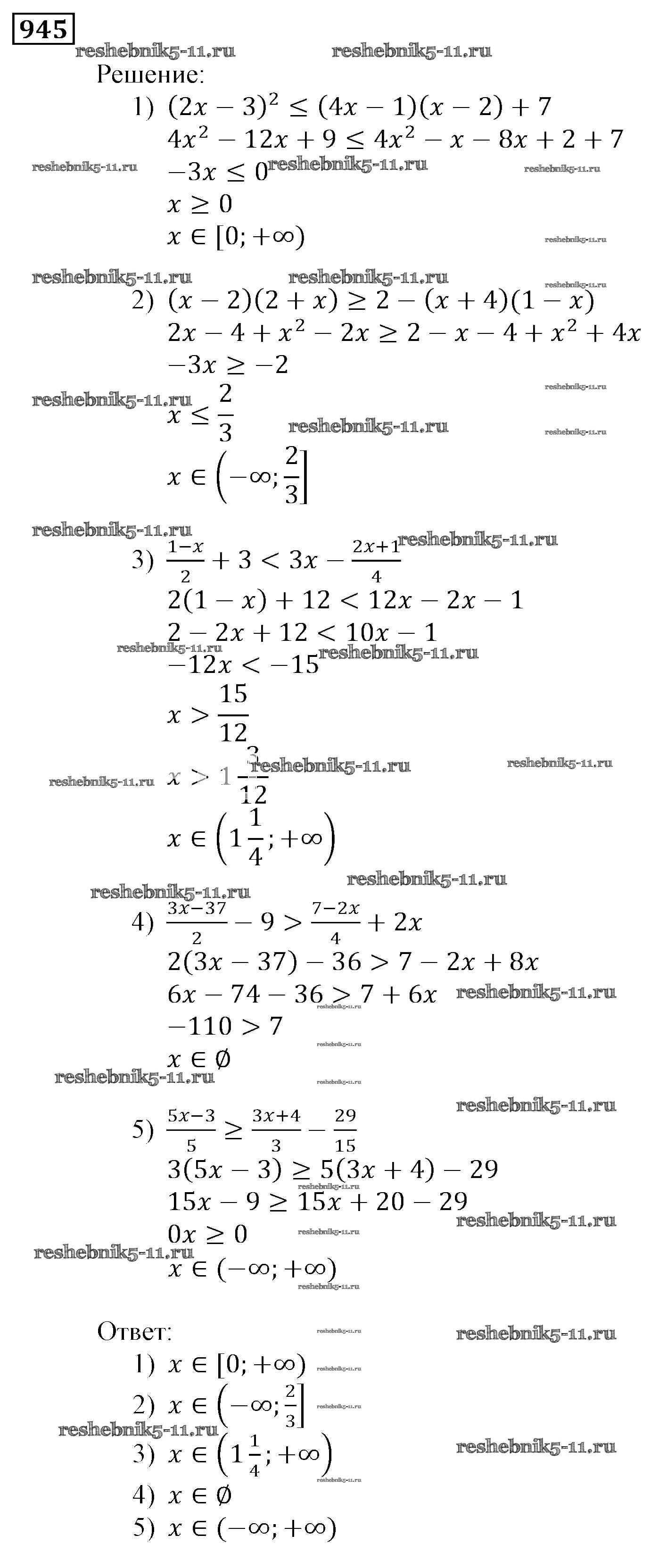 Готовая домашняя работа с ответами по Алгебре за 9 класс Мерзляк, Полонский, Якир Учебник Алгоритм успеха Вентана-граф 2016 ФГОС - Упражнения 945