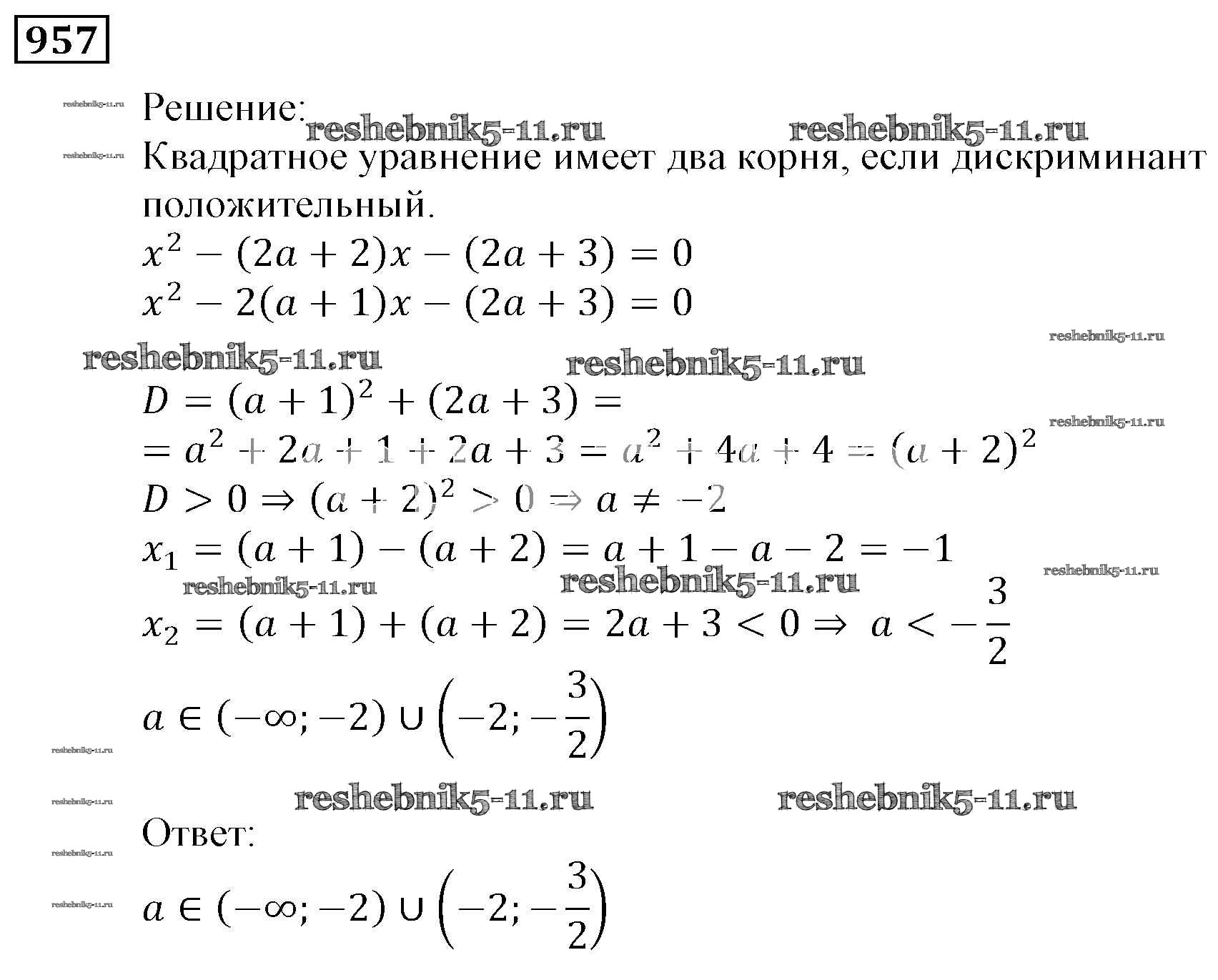 Готовая домашняя работа с ответами по Алгебре за 9 класс Мерзляк, Полонский, Якир Учебник Алгоритм успеха Вентана-граф 2016 ФГОС - Упражнения 957
