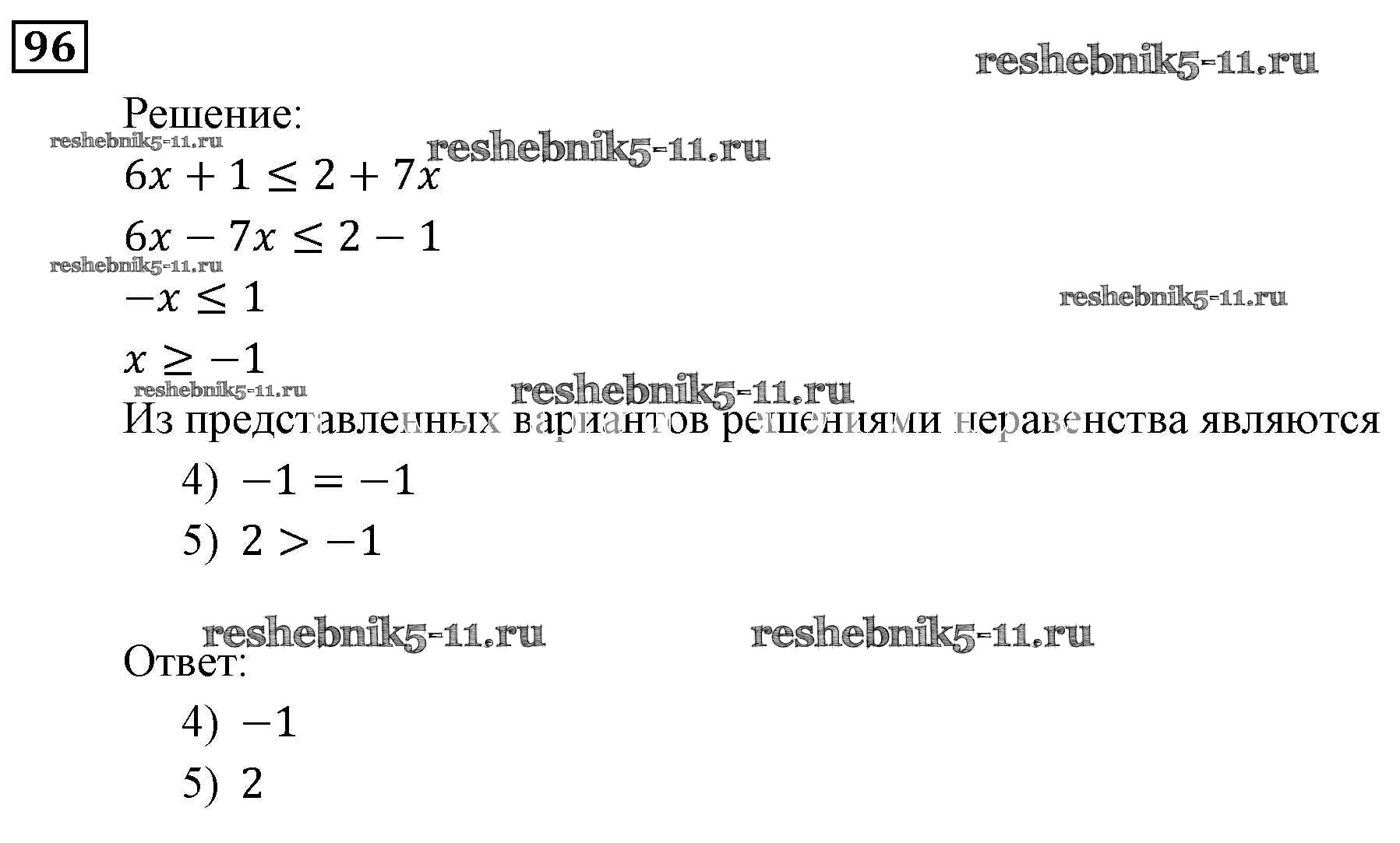 Готовая домашняя работа с ответами по Алгебре за 9 класс Мерзляк, Полонский, Якир Учебник Алгоритм успеха Вентана-граф 2016 ФГОС - Упражнения 96