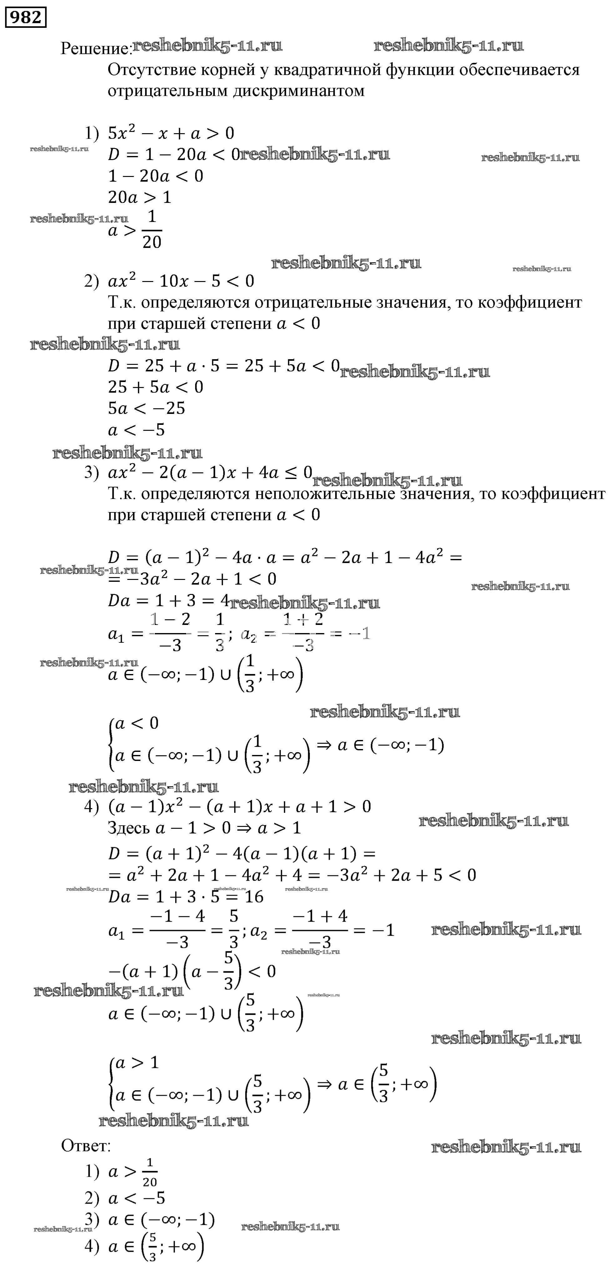 Готовая домашняя работа с ответами по Алгебре за 9 класс Мерзляк, Полонский, Якир Учебник Алгоритм успеха Вентана-граф 2016 ФГОС - Упражнения 982