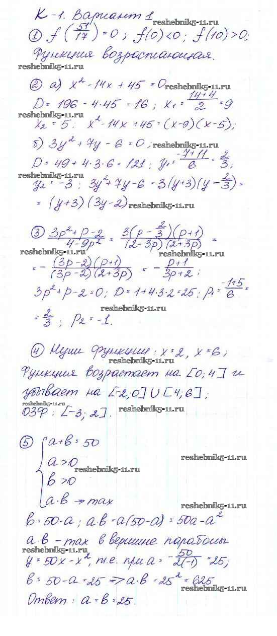 Готовая домашняя работа с ответами по Алгебре за 9 класс Макарычев, Миндюк, Крайнева Дидактические материалы Просвещение 2015 ФГОС - КР-1 Вариант 1