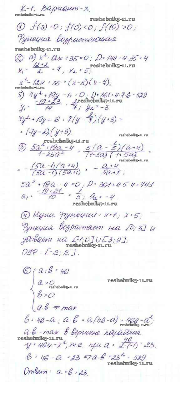 Готовая домашняя работа с ответами по Алгебре за 9 класс Макарычев, Миндюк, Крайнева Дидактические материалы Просвещение 2015 ФГОС - КР-1 Вариант 3