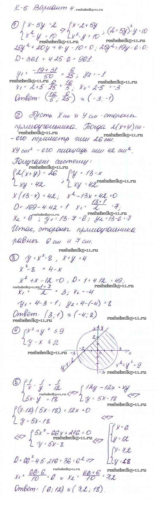 Готовая домашняя работа с ответами по Алгебре за 9 класс Макарычев, Миндюк, Крайнева Дидактические материалы Просвещение 2015 ФГОС - КР-5 Вариант 4