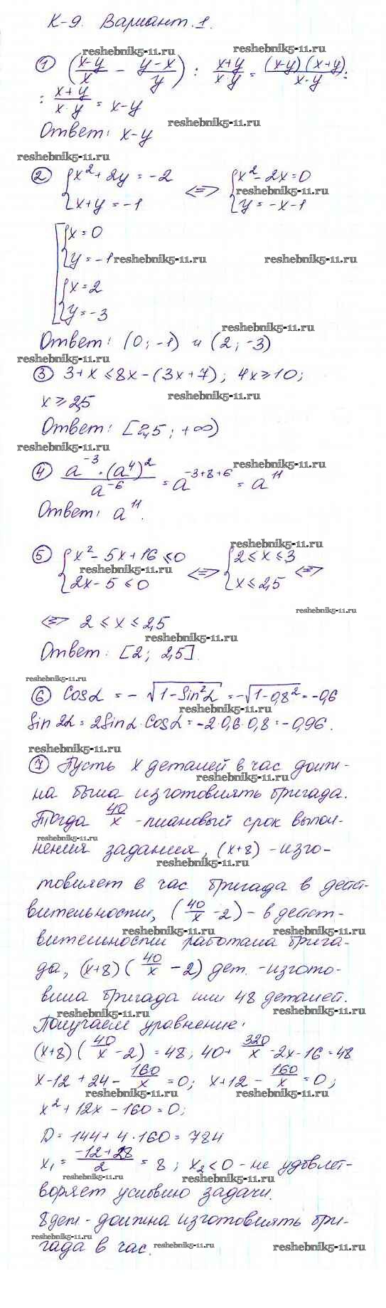 Готовая домашняя работа с ответами по Алгебре за 9 класс Макарычев, Миндюк, Крайнева Дидактические материалы Просвещение 2015 ФГОС - КР-9 Вариант 1