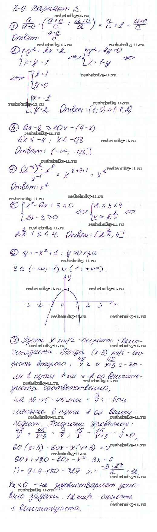 Готовая домашняя работа с ответами по Алгебре за 9 класс Макарычев, Миндюк, Крайнева Дидактические материалы Просвещение 2015 ФГОС - КР-9 Вариант 2